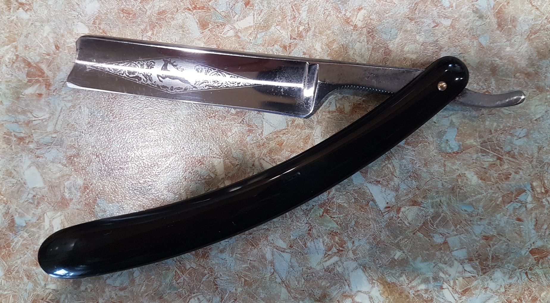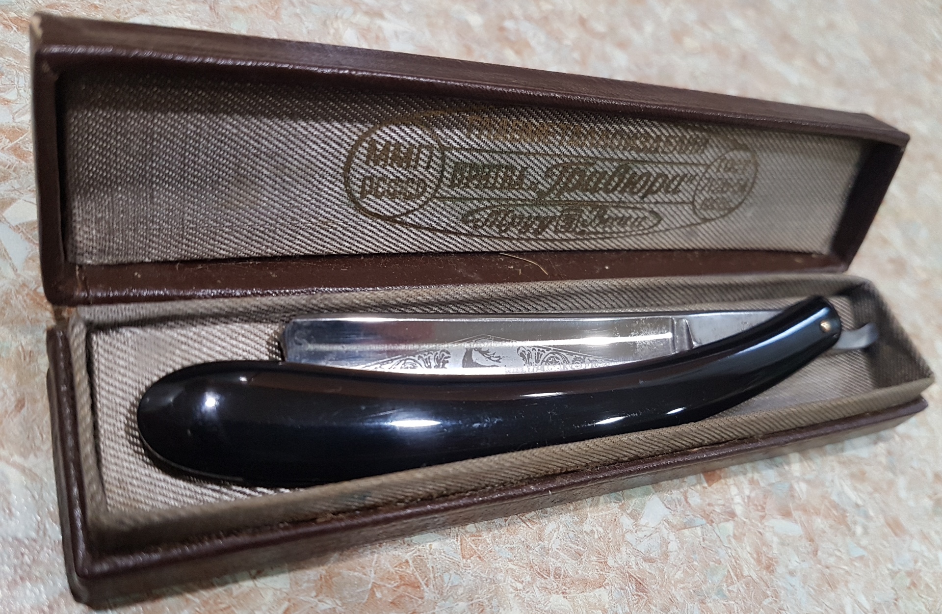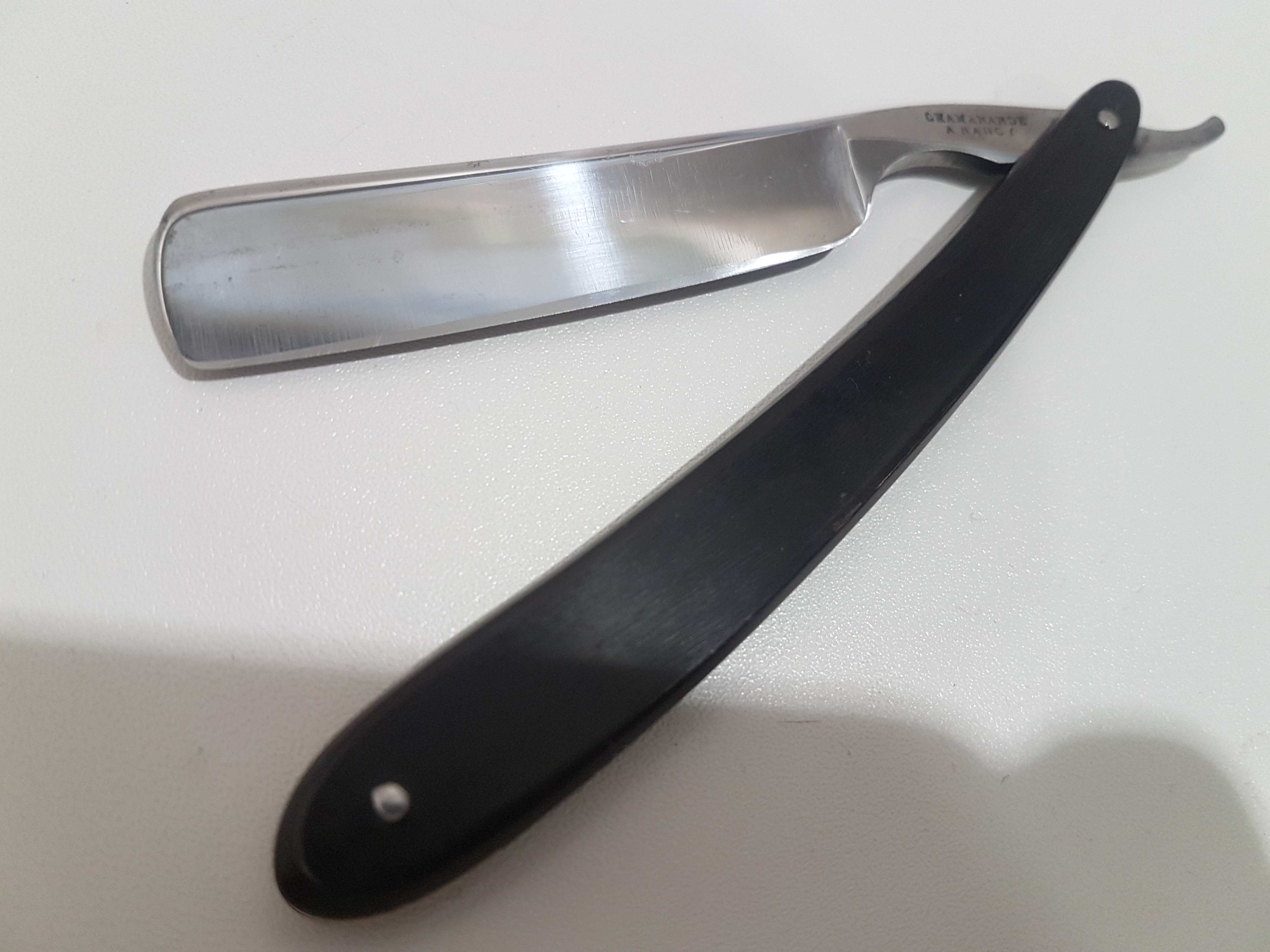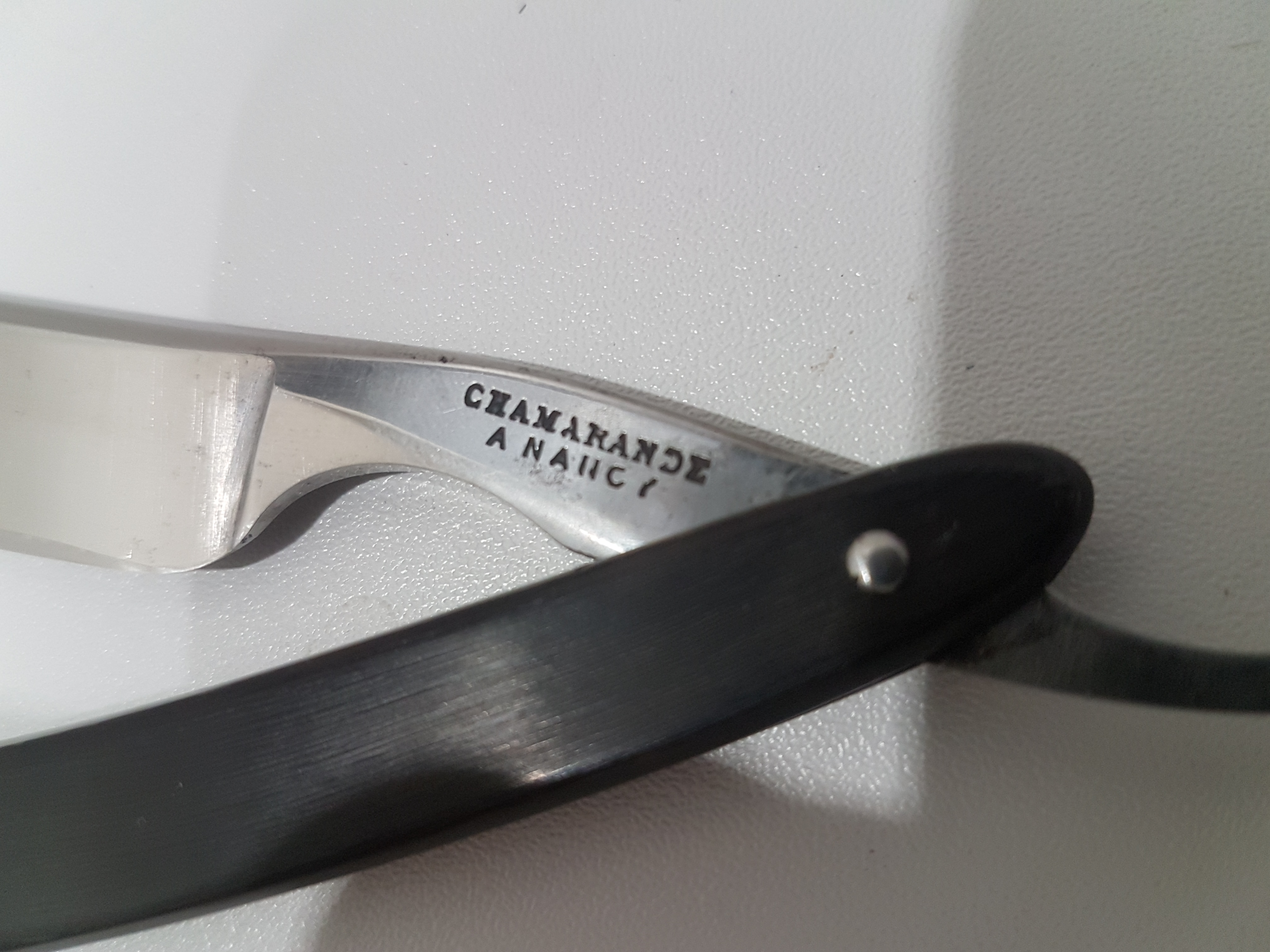 Продаётся от VolgarПродам французскую клинковую бритву  Chamarande a Nancy. Произведена скорее всего в Тьере или Ножане с середины по конец 19 века. длина 73 мм. ширина 19,5 мм. обушок 4 мм. Бритва в отличном состоянии, с родной ручкой. Прекрасная сталь,классическая форма клинка. Заточена на японских водных камнях, проходит тест на рез волоса. Spoiler Show