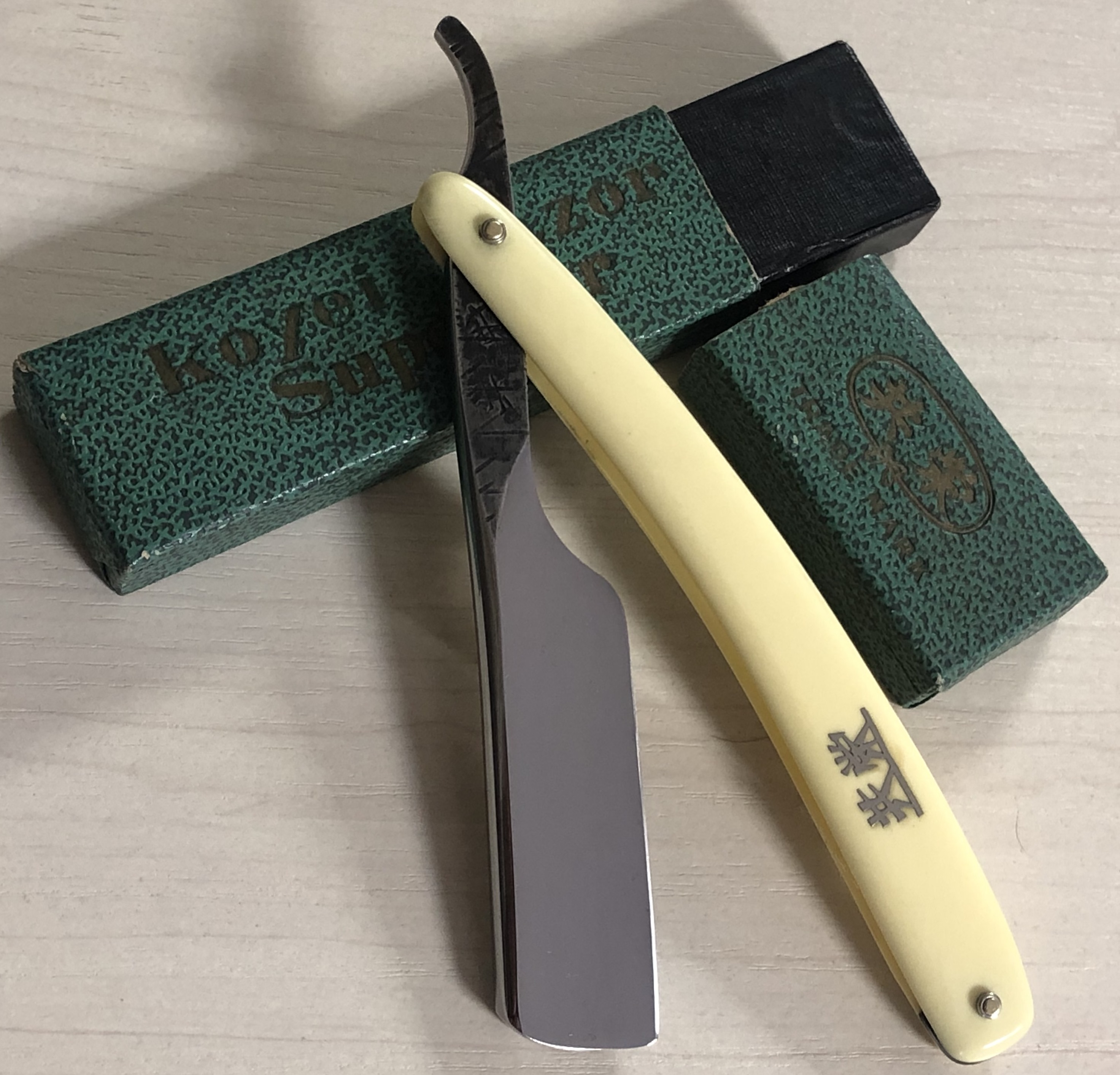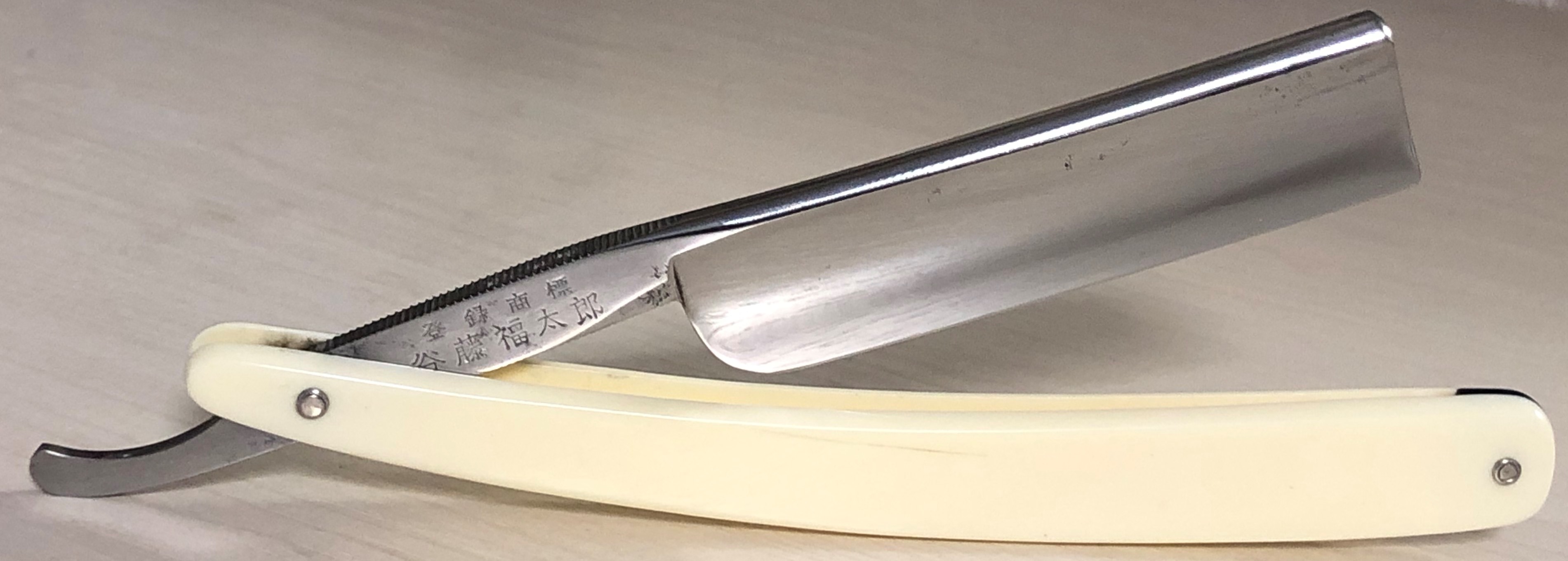 Ещё одна бритва, форма которой не часто встречается у японских производителей прошлого.