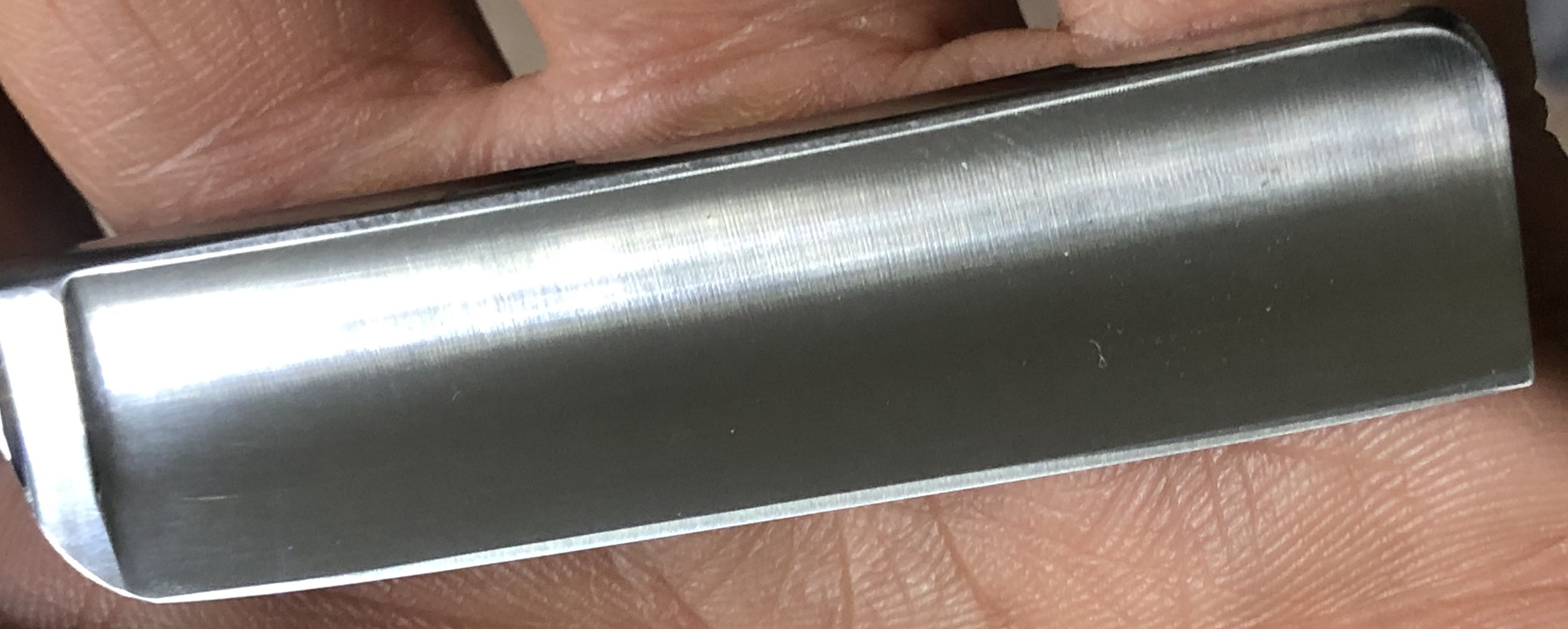 Ширина полотна-17 мм Толщина обушка-4 мм Полная вогнутость. Углеродистая сталь. Бритва в идеальном состоянии, без признаков пользования и износа.Можно сказать внешний вид новой.Бритву разобрал, чтобы поправить кривой пин, заодно и почистил район эрля от окисления.Дополнительно установил внутренние шайбы, для надежности.Идеальная геометрия клинка:кромочка равномерна по всей длине.Сталь и кромка чистые, без видимых дефектов.Очень хороший вариант для новичка,в качестве первой и недорогой.Родная коробочка в комплекте. Заточена и готова к бритью. Цена-3800 р с доставкой.[/b][/QUOTE] ПРОДАН Внимание! Важная информация! Spoiler Show