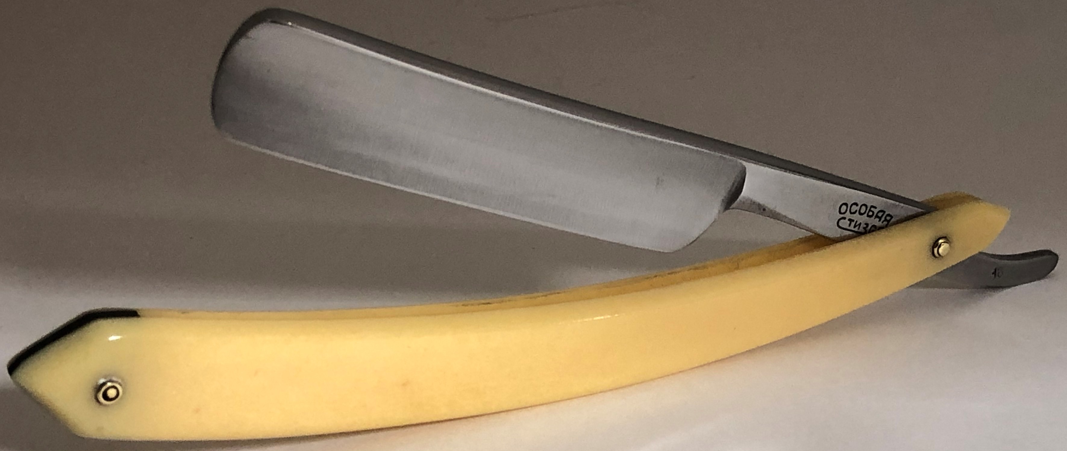 Продаётся от wrenОпасная бритва "ОСОБАЯ"от Стиз,1960-го года выпуска. Ширина полотна-17 мм Толщина обушка-4 мм Полная вогнутость. Углеродистая сталь. Бритва в идеальном состоянии, без признаков пользования и износа.Можно сказать внешний вид новой.Бритву разобрал, чтобы поправить кривой пин, заодно и почистил район эрля от окисления.Дополнительно установил внутренние шайбы, для надежности.Идеальная геометрия клинка:кромочка равномерна по всей длине.Сталь и кромка чистые, без видимых дефектов.Очень хороший вариант для новичка,в качестве первой и недорогой.Родная коробочка в комплекте. Заточена и готова к бритью. Цена-3800 р с доставкой.[/b][/QUOTE] ПРОДАН Внимание! Важная информация! Spoiler Show