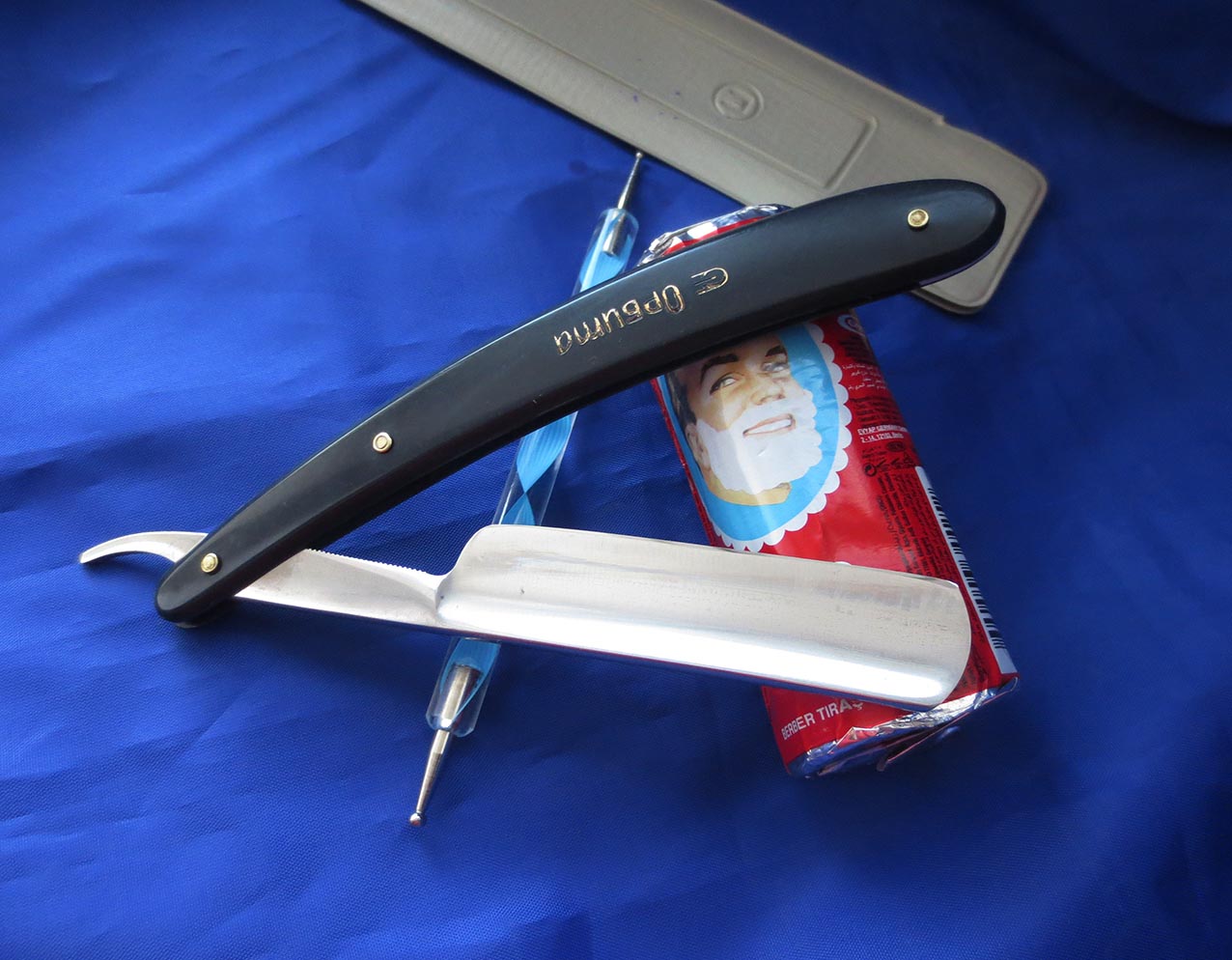 Советская опасная бритва "Ока" 56 года завода "Труд" п. Вача. Качественный металл тех лет, ширина полотна - 15 мм, заводская оправа - полированный пластик, заклёпка - латунь. Заточена на японских водных камнях и готова к работе сразу после покупки. Бреет чётко, заценил самолично. По большому счёту, для опасного бритья другого и не надо, тем более для новичка. Мягкое и чистое бритьё без всякой агрессии, чего ещё желать бритвоману, ну разве купить ещё одну для коллекции..) После тестирования инструмент продезинфицирован хлоргексидином, направлен, смазан и выставлен на продажу. Довольно бюджетный вариант для человека желающего освоить опасное бритьё без значимых затрат. Цена - 3250 руб. При покупке ремня и бритвы - почта по РФ за мой счёт.