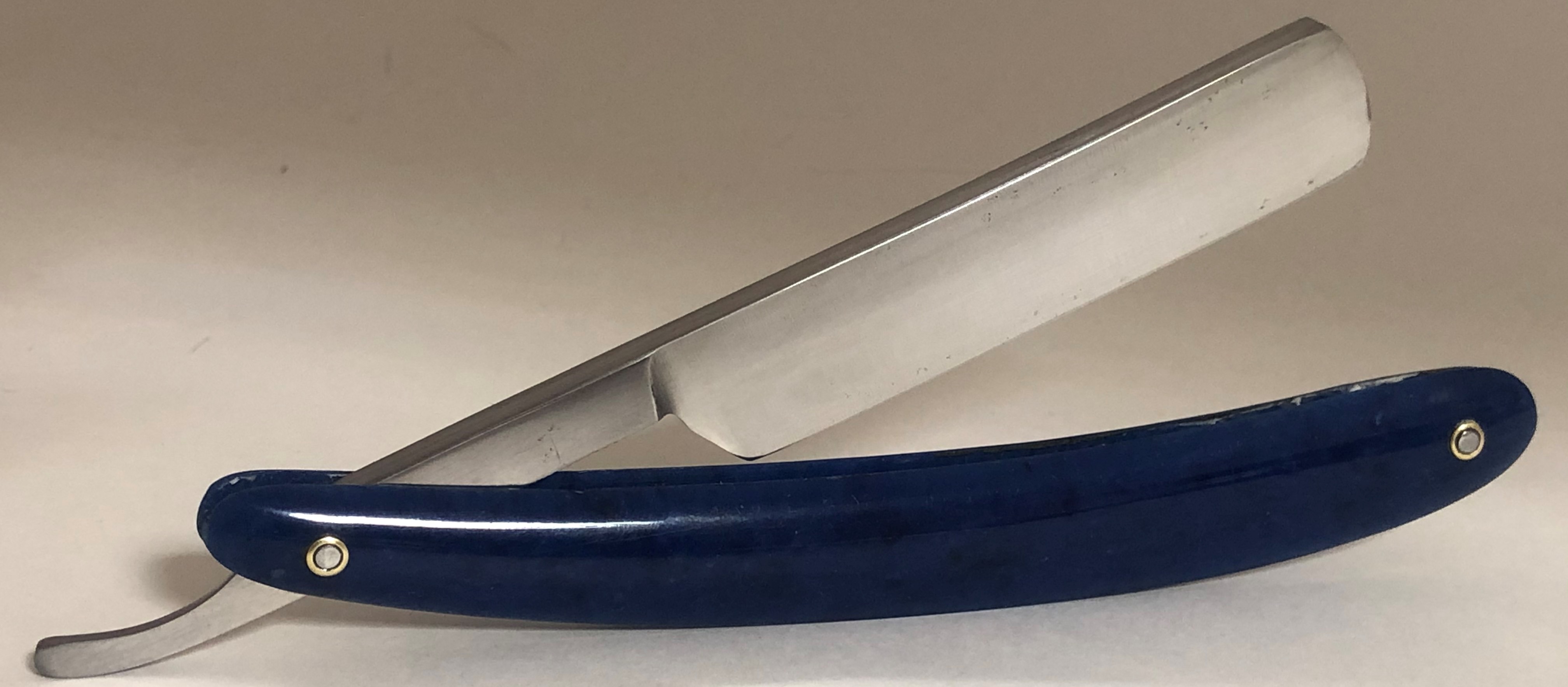 Совершенно нетронутая бритва, не разбиралась и не ремонтировалась.Все оригинальное и находится в идеальном состоянии.После консервации.Имеет заводскую шлифовку и полировку.Сталь чистая, как будто клинок произведен только вчера.Идеальная геометрия:кромочка равномерна по всей длине и практически незаметна.За счет своего толстенного обушка бритва тяжёлая, что очень хорошо для новичка.По всей видимости(я не измерял, но все же),цифра 24 является углом заточки, исходя из формы лезвия полота. Т.е., угол заточки достаточно большой, что придает кромке большую стойкость.А укороченное полотно способно лучше маневрировать на более неудобных участках лица, при бритье.Короче,бритва великолепна во всех отношениях, а вкупе с нетронутым состоянием может занять первые места в любой коллекции.Перед отправкой будет заточена и лично мной протестирована(по желанию).Не пропустите очень красивую, практичную и редкую вещь.