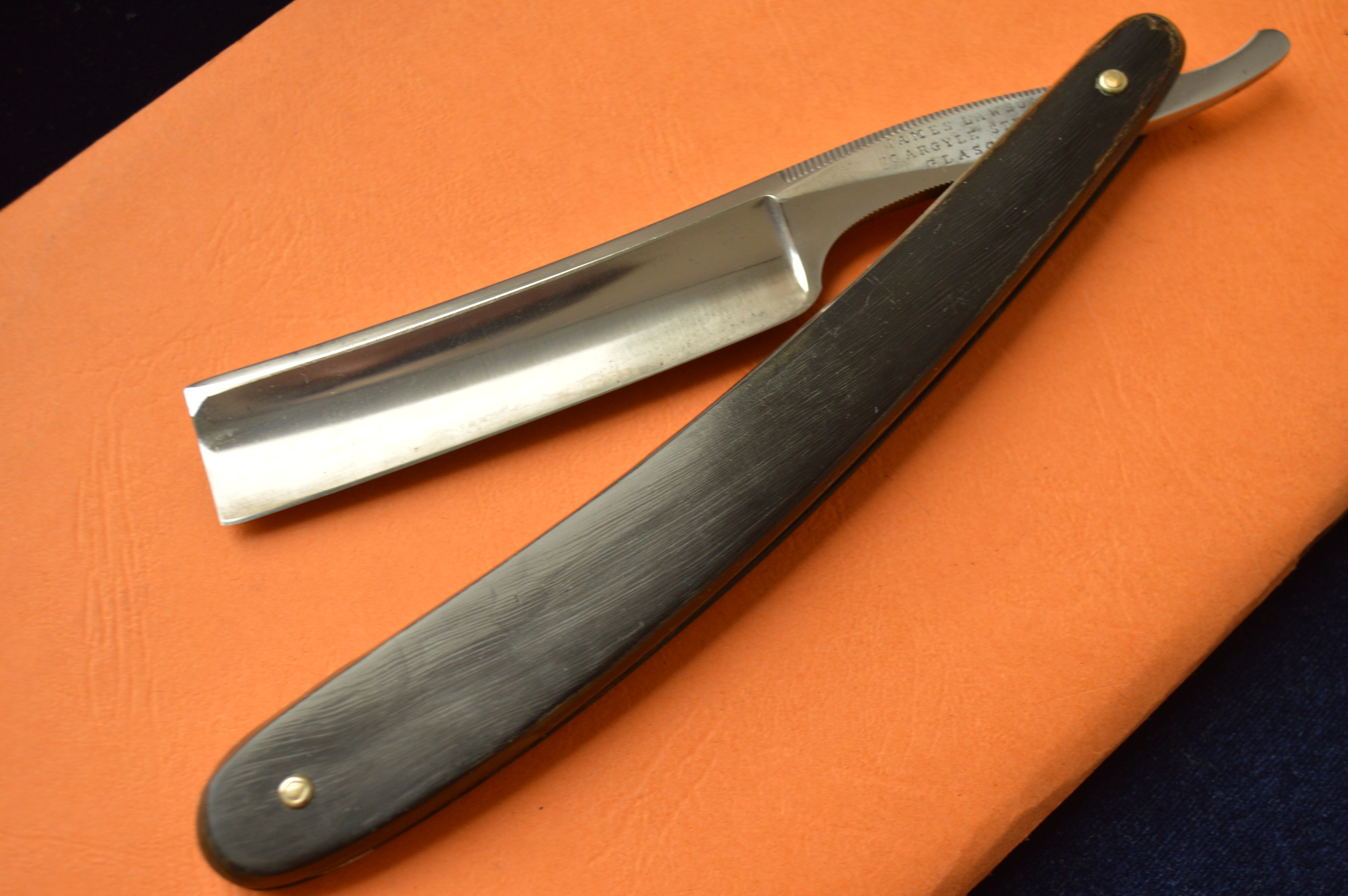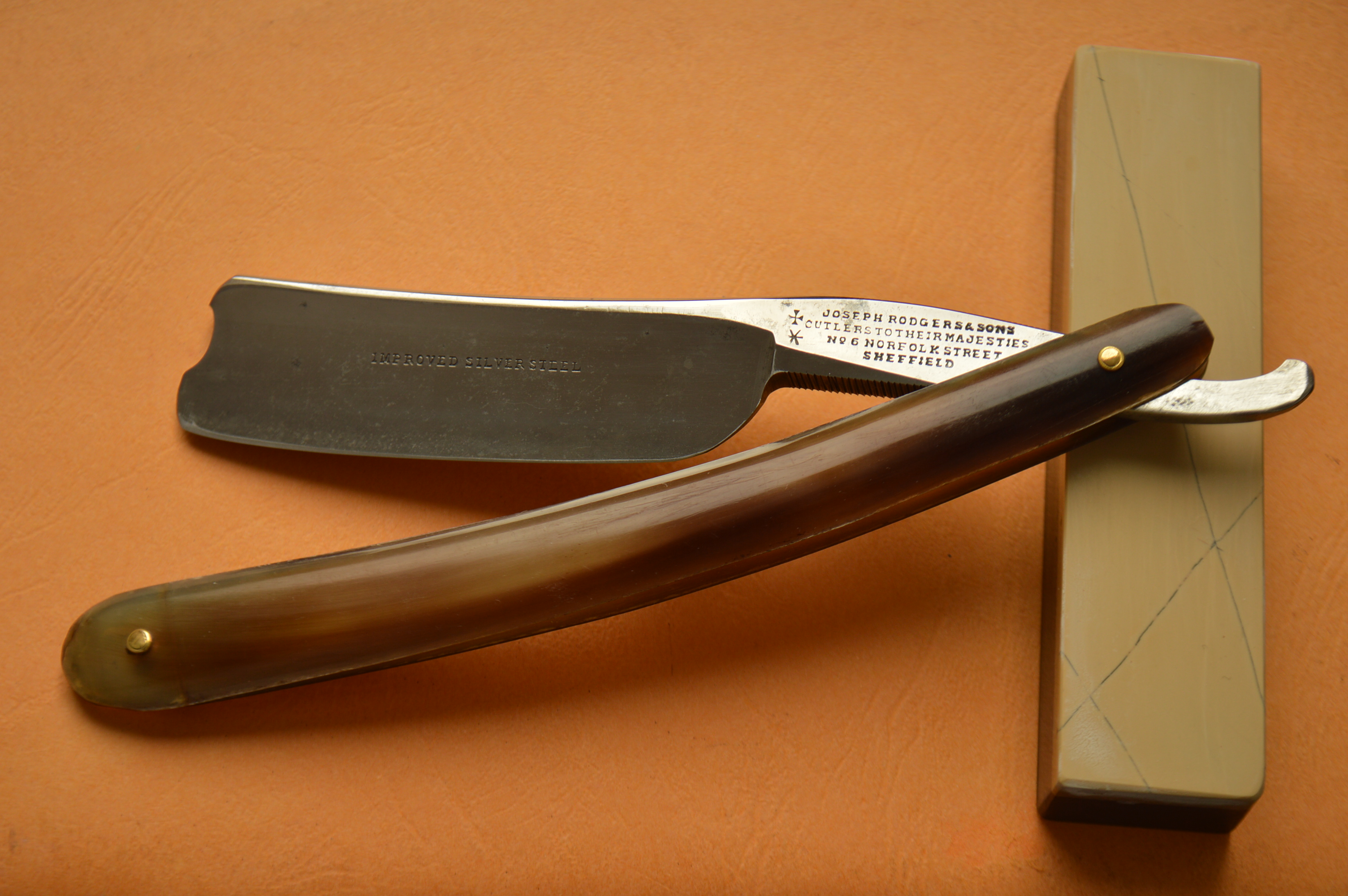 Spoiler Show Joseph Rodgers & Sons по сей день является синонимом качества и традиций английского производства режущего инструмента. С далекого 1822 года Joseph Rodgers & Sons имеют статус "Cutlers to Her Majesty" (ножевые мастера Её Величества). Один из тех производителей, который имеет очень большую армию поклонников по всему миру, бритвы пользуются спросом среди почитателей бритья клинковой бритвой по всему миру. При этом в продаже появляются крайне редко, в особенности такие экземпляры. Бритва клин в отличном состоянии ширина полотна – 7/8, очень крупное исполнение, крупное полотно, обух и эрль, крупные насечки сверху эрля и снизу, крупный хвостик, очень массивный экземпляр. Бритва заточена и бреет с характерной Роджерсам мягкостью и четкостью реза. Ручка рог. Очень удобная форма полотна имеет правильную улыбку, которая образуется посредством сужения полотна к пяточке и к носику, что лучшим образом влияет на комфорт при бритье. Замечательный экземпляр, который станет прекрасным украшением любой коллекции, будет отличным вариантом в повседневной работе. По большому счету, такие крупные Роджерсы, чтоб без регринда и в таком состоянии в продаже практически не бывают, по-этому пользуйтесь случаем, без преувеличения могу сказать, что это будет любимая бритва в Вашей коллекции. Spoiler Show