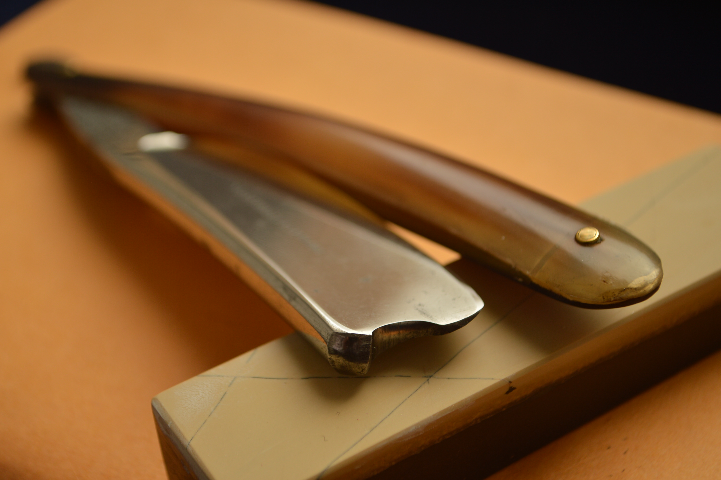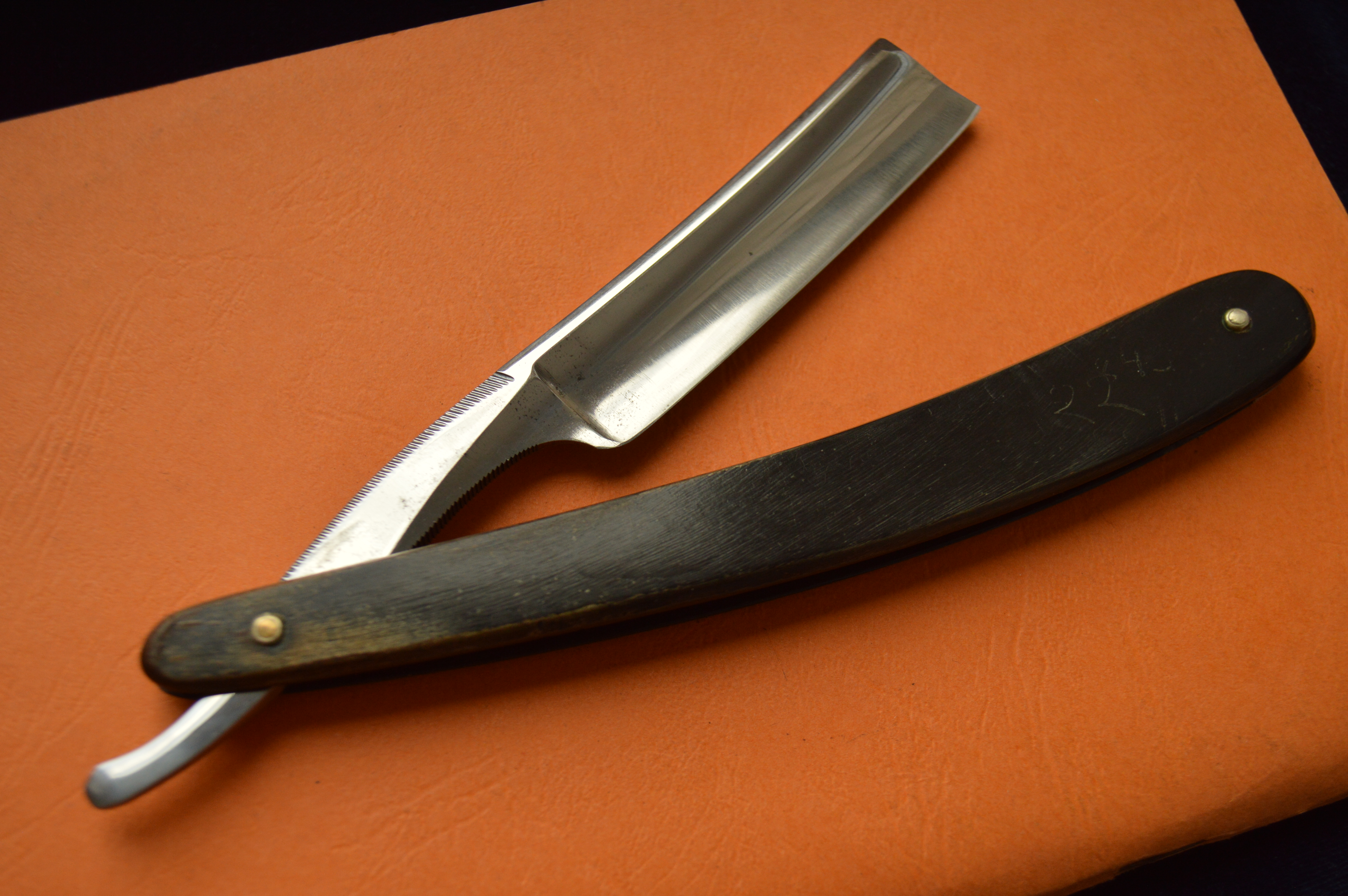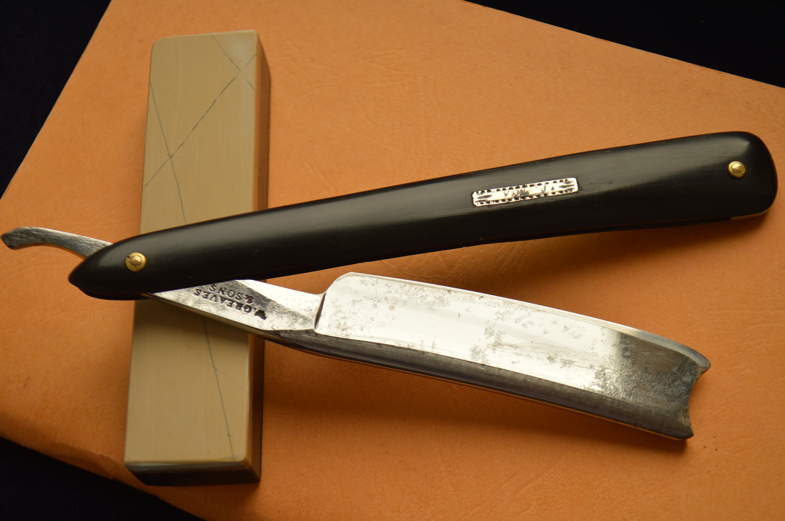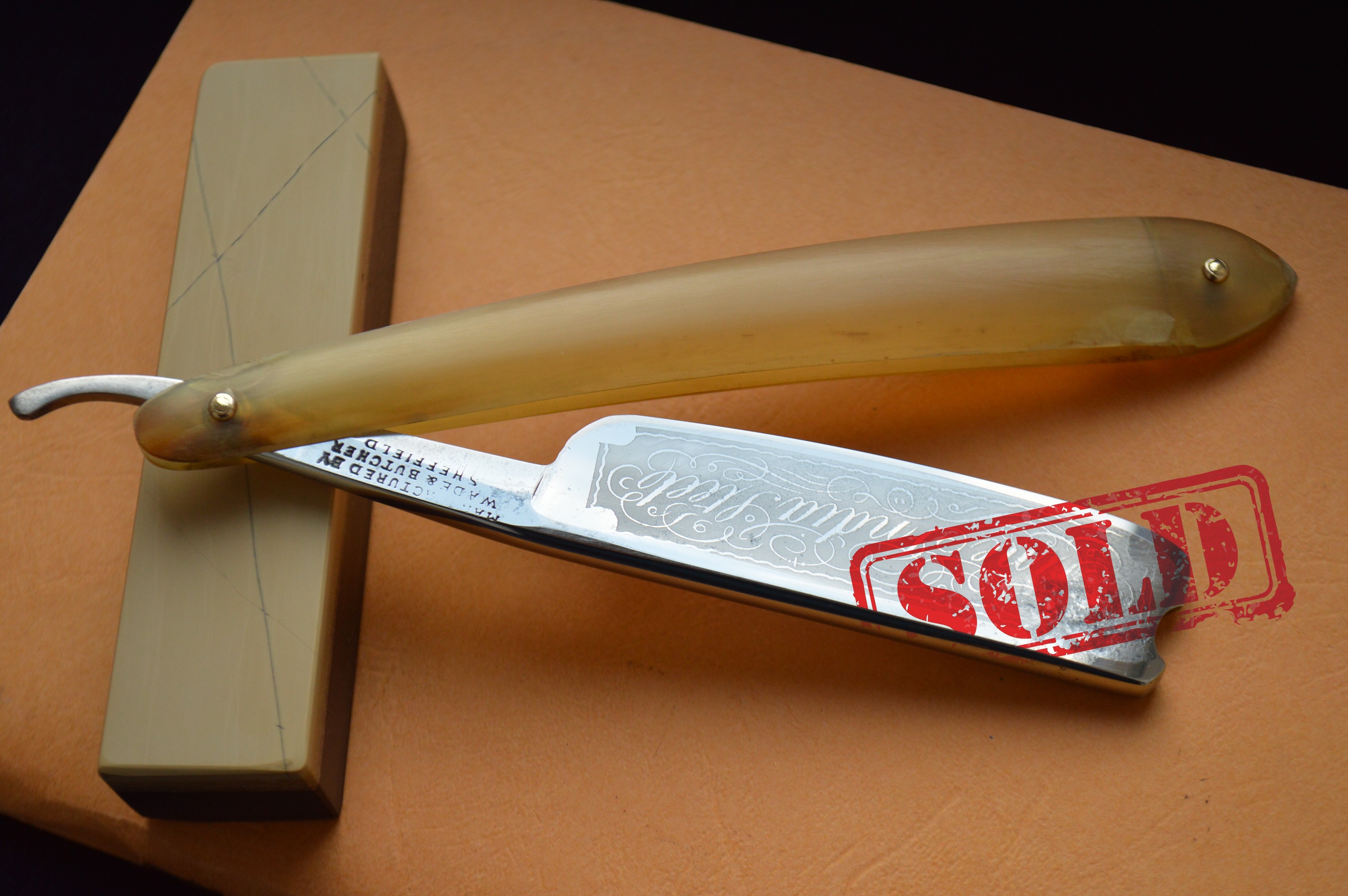 Spoiler Show Один из тех производителей, который имеет очень большую армию поклонников по всему миру, бритвы пользуются спросом среди почитателей бритья клинковой бритвой по всему миру. При этом в продаже появляются крайне редко. Бритва клин в хорошем состоянии ширина полотна – 6/8, длина по кромке 8 см, массивный образец старой Англии, очень редкая и в то же время удобная форма полотна имеет правильную легкую улыбку, которая образуется посредством сужения полотна к носику, что лучшим образом влияет на комфорт при бритье. Редчайший испанский носик, обратные спуски по обуху к его вершине, ручка рог изумительной формы и исполнения украшена инкрустацией. Бритва заточена для бритья, а не для полки. Бритва, как и все иные бритвы этого производителя, бреет прекрасно, сделанная из лучшей английской литой уклеродки готова мягко выбрить любую щетину. Очень редкий экземпляр, который станет прекрасным украшением любой коллекции, будет отличным вариантом в повседневной работе. Бритва полностью разбиралась и чистилась с последующей сборкой, ручка рог имела потери, сейчас все восстановлено и будет служить долго и надежно, Сама бритва несет в себе всю всою историю, все отметки времени на ней оставлены сознательно, все это и добавляет шарма и дает понимание того, что в руках действительно незаурядная 200-летняя вещь. Spoiler Show