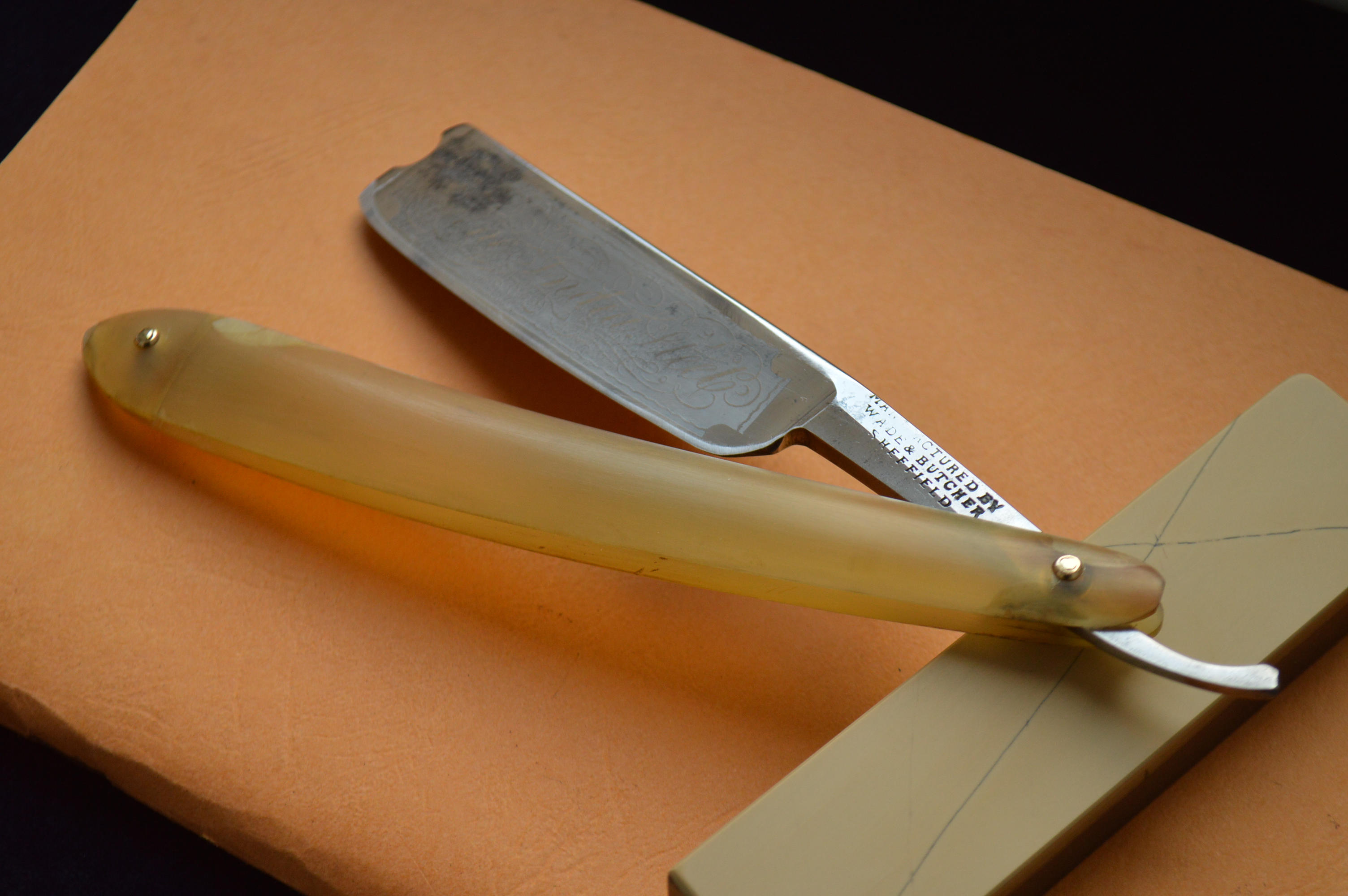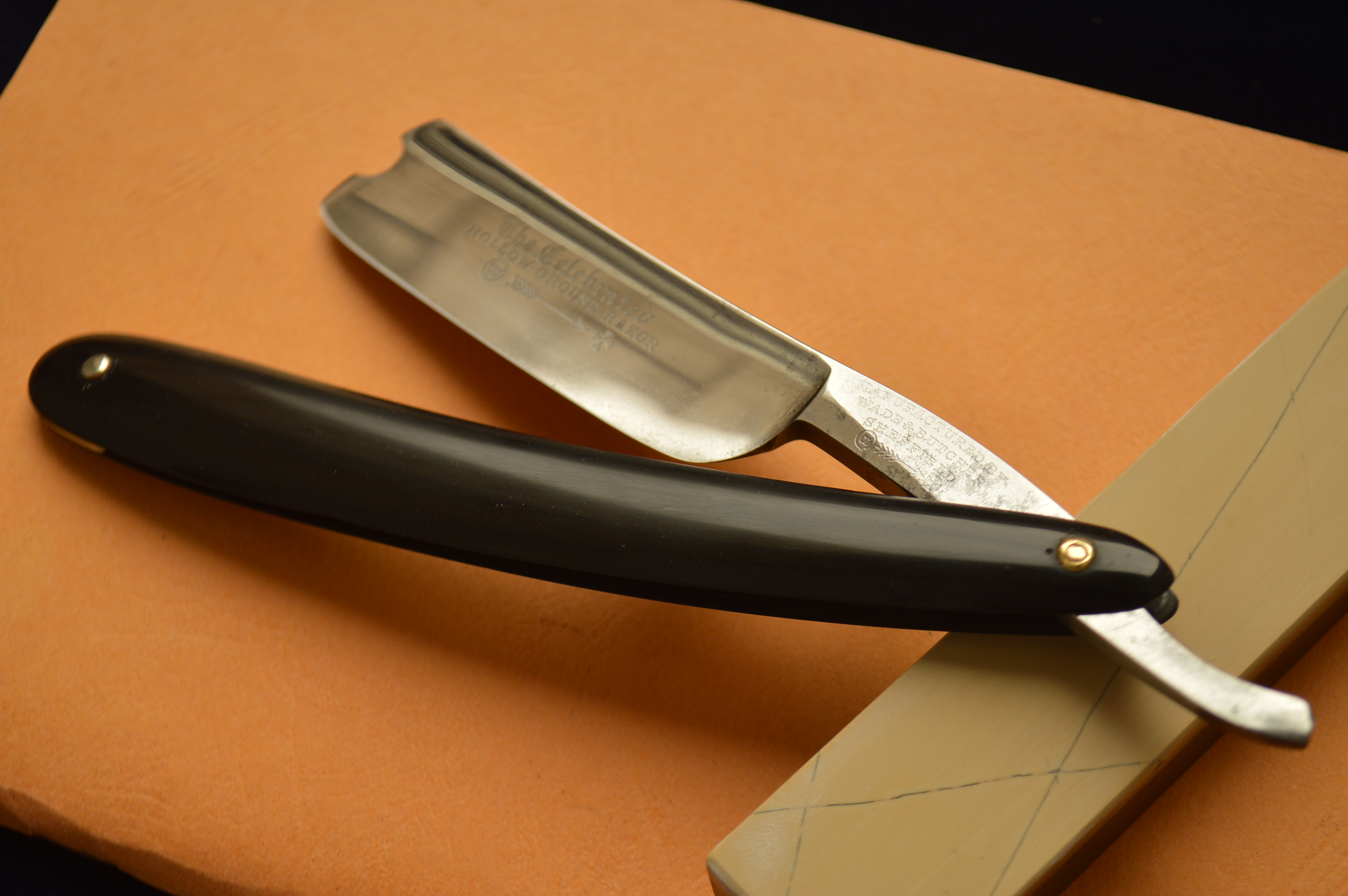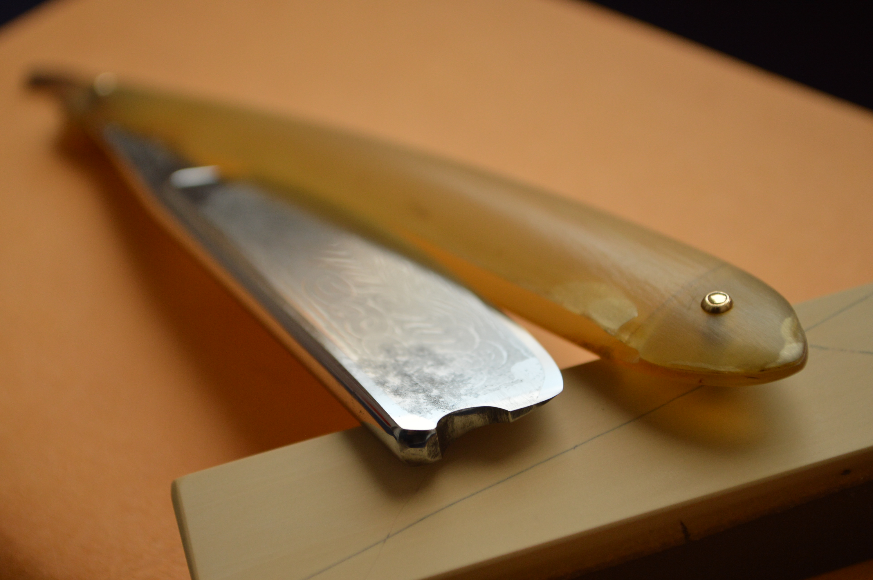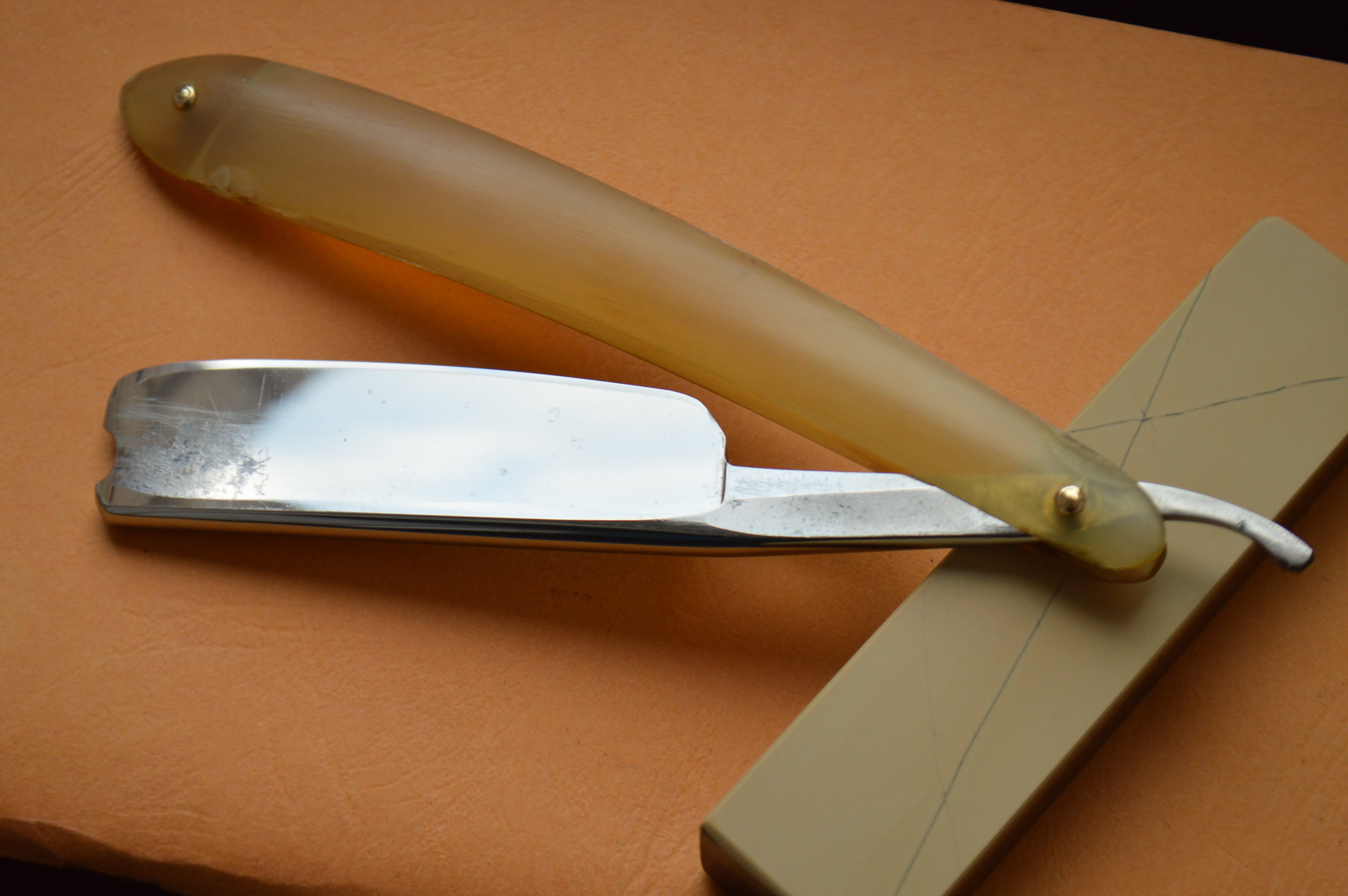 Spoiler Show Один из тех производителей, который имеет очень большую армию поклонников по всему миру, бритвы пользуются спросом среди почитателей бритья клинковой бритвой по всему миру. При этом в продаже появляются крайне редко. Бритва клин в хорошем состоянии ширина полотна – 6/8, длина по кромке 8 см, массивный образец старой Англии, очень редкая и в то же время удобная форма полотна имеет правильную легкую улыбку, которая образуется посредством сужения полотна к носику, что лучшим образом влияет на комфорт при бритье. Редчайший испанский носик, обратные спуски по обуху к его вершине, ручка рог изумительной формы и исполнения украшена инкрустацией. Бритва заточена для бритья, а не для полки. Бритва, как и все иные бритвы этого производителя, бреет прекрасно, сделанная из лучшей английской литой уклеродки готова мягко выбрить любую щетину. Очень редкий экземпляр, который станет прекрасным украшением любой коллекции, будет отличным вариантом в повседневной работе. Бритва полностью разбиралась и чистилась с последующей сборкой, ручка рог имела потери, сейчас все восстановлено и будет служить долго и надежно, Сама бритва несет в себе всю всою историю, все отметки времени на ней оставлены сознательно, все это и добавляет шарма и дает понимание того, что в руках действительно незаурядная 200-летняя вещь. Spoiler Show