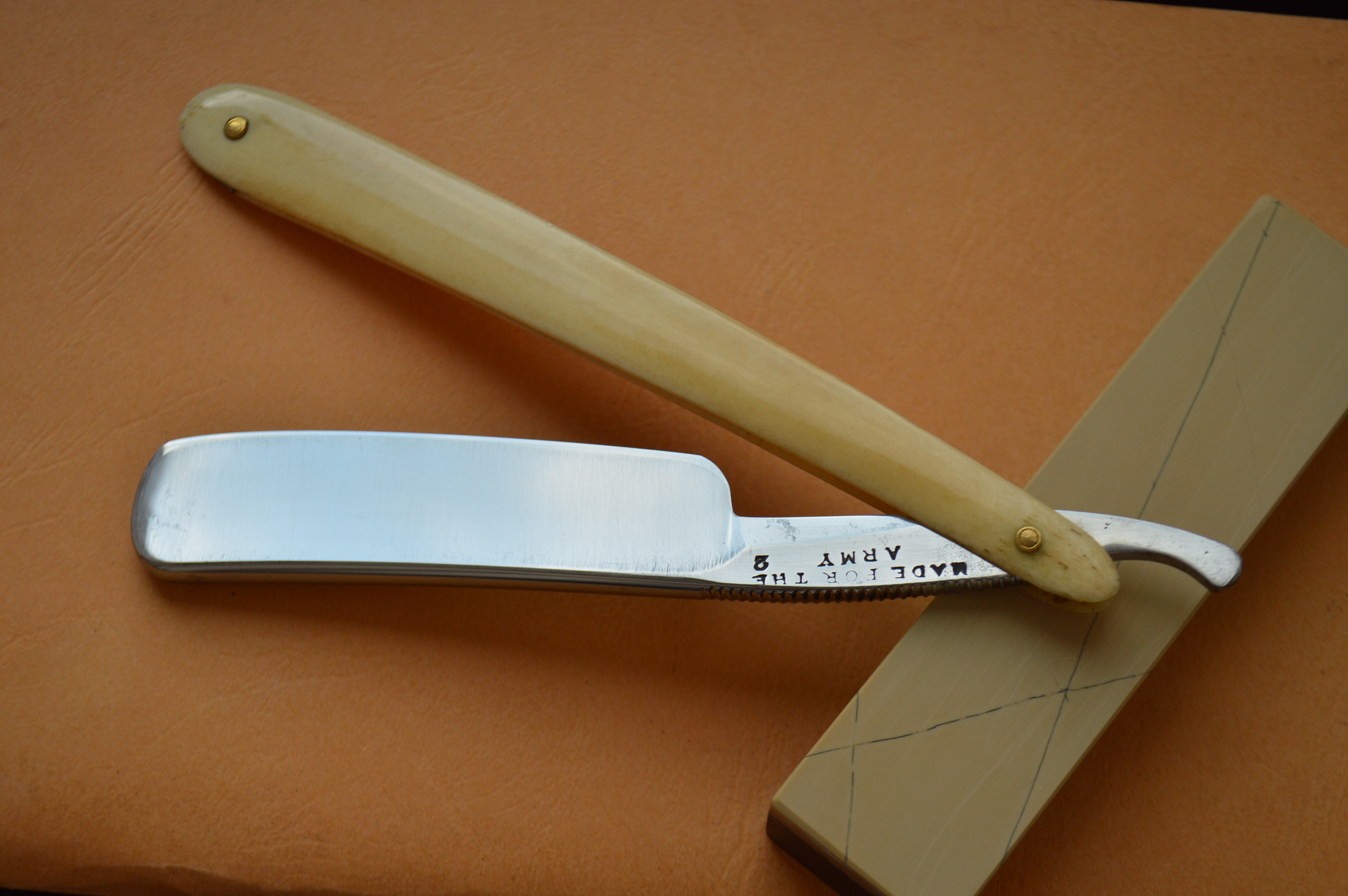 Spoiler Show Бритва в хорошем состоянии как для ее возраста. Бритва разбиралась, чистилась, менян осевой пин. Размер 4/8, выборка на четверть, ручка синтетика. Отличный экземпляр как в коллекцию, так и для постоянного пользования. Заточена, при этом не возможно не сказть про сталь... сталь не имеет ничего общего из сталями бритв советского производства послевоенного периода. Очень и очень класное бритье выдает этот образец. За деталями прошу обращаться в личные сообщение. Оплата по договоренности обсуждается в л/с (зачастую это перевод на карту Виза), отправка посредством государственной почты Украины и России. Резерв в л/с. Spoiler Show