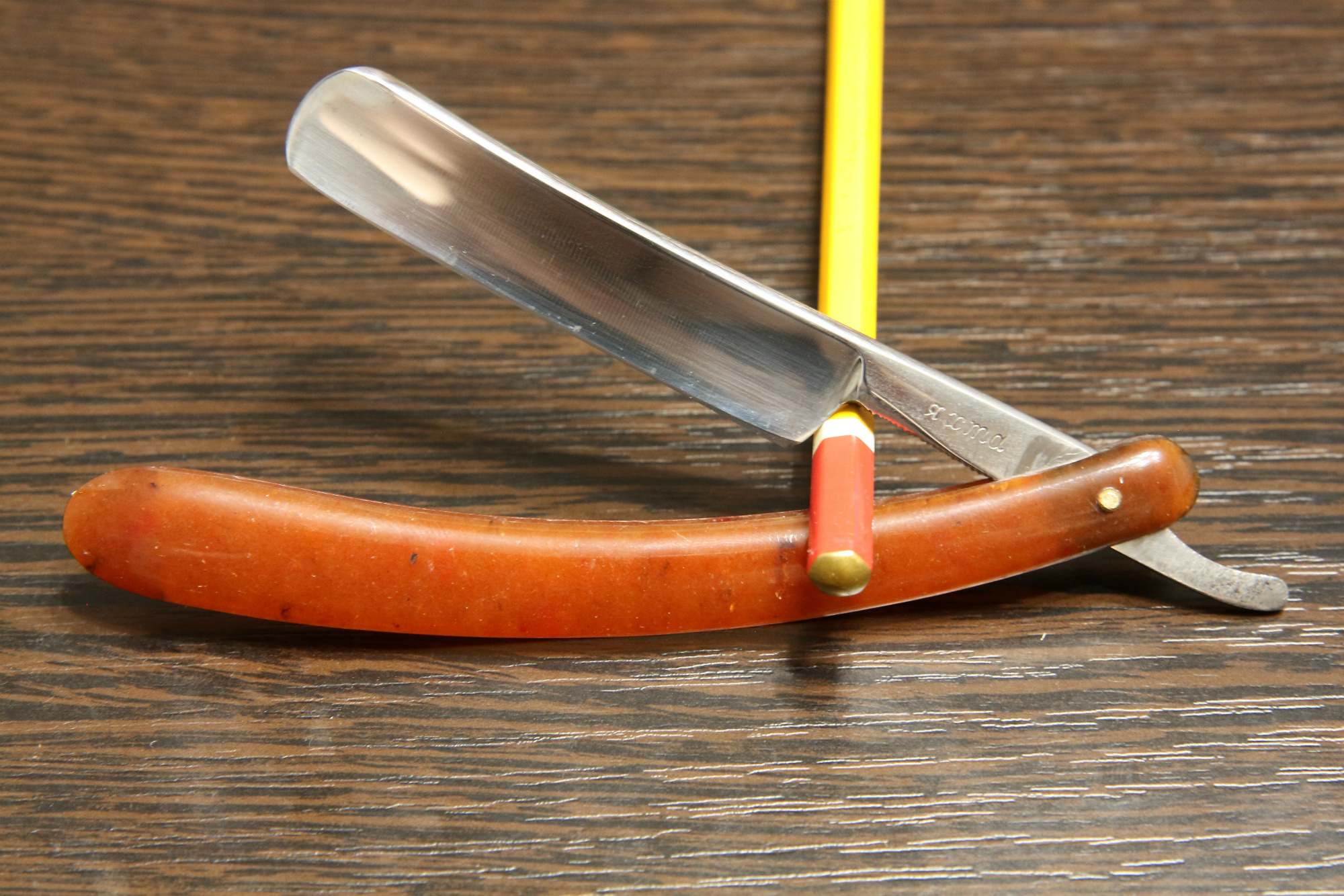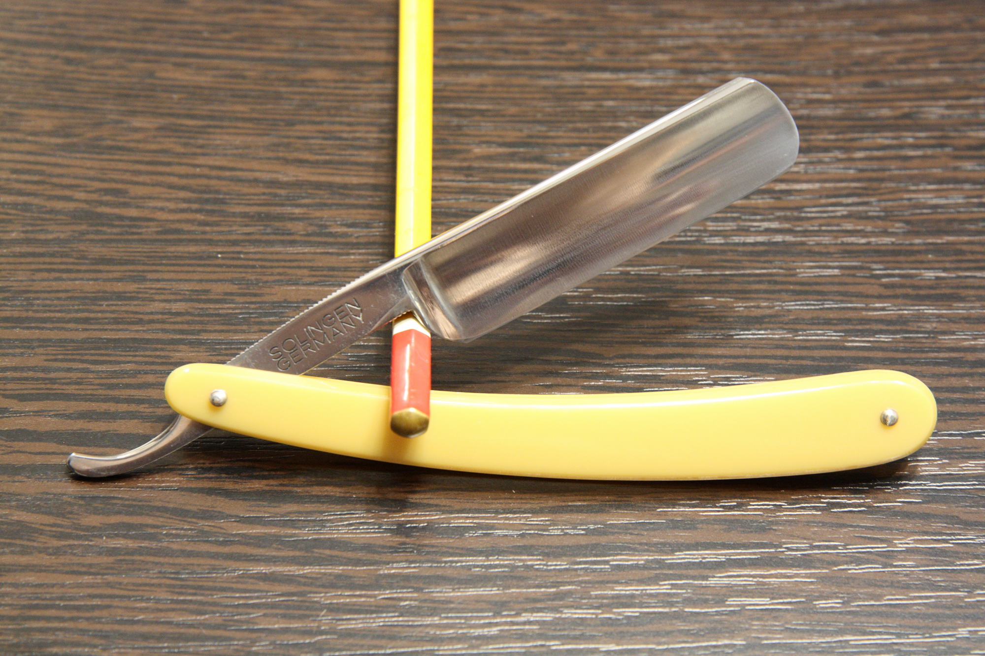 Опасная бритва Dovo Best Quality Solingen, сделана в Германии в г. Золинген, ширина полотна 20.3 мм, ручка трехпиновая из желтоватого  пластика, все родное. Ко мне попала с заводской заточкой и без каких либо следов, с гравюрой. Продезинфицировал и подготовил к бритью. Широкая и удобная бритва с традиционной немецкой сталью на полной выборке. Цена - руб.