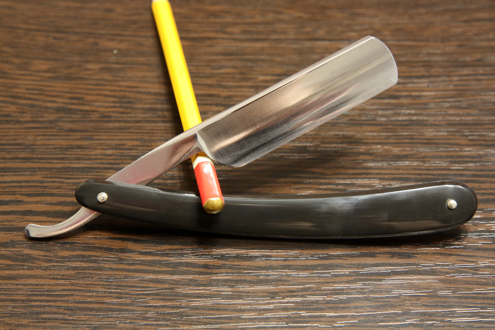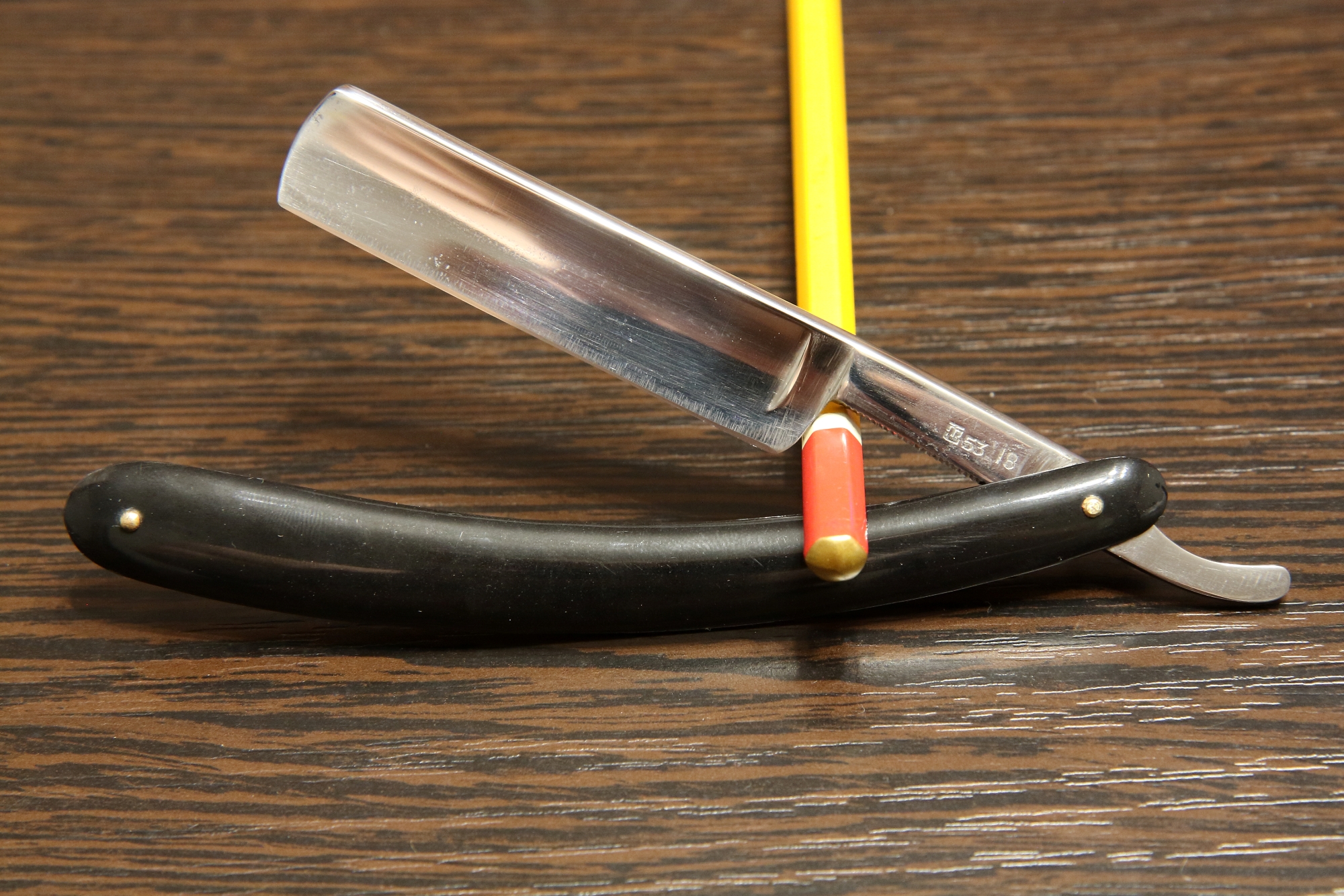 Опасная бритва Парикмахерская №1, завод ЗТВ (Вача), 1959 год. Ширина полотна 17.5 мм у пятки и до 16.7 у носа, все родное, футляр тоже. Пришла с некоторыми следами, бритву вручную почистил и заточил. Подготовлена мной к бритью. Модель Парикмахерская встречается очень редко, т.к. в свободной продаже их не было, поставлялись только в цирюльни. Сталь твердая, бреет несколько дубовато, но хорошо держит кромку. Цена - руб. К бритве рекомендую приобрести ремень для правки опасных бритв моего изготовления из итальянской кожи (подробнее на странице 4, объявления 56-58 и странице 9, объявления 127). Spoiler Show