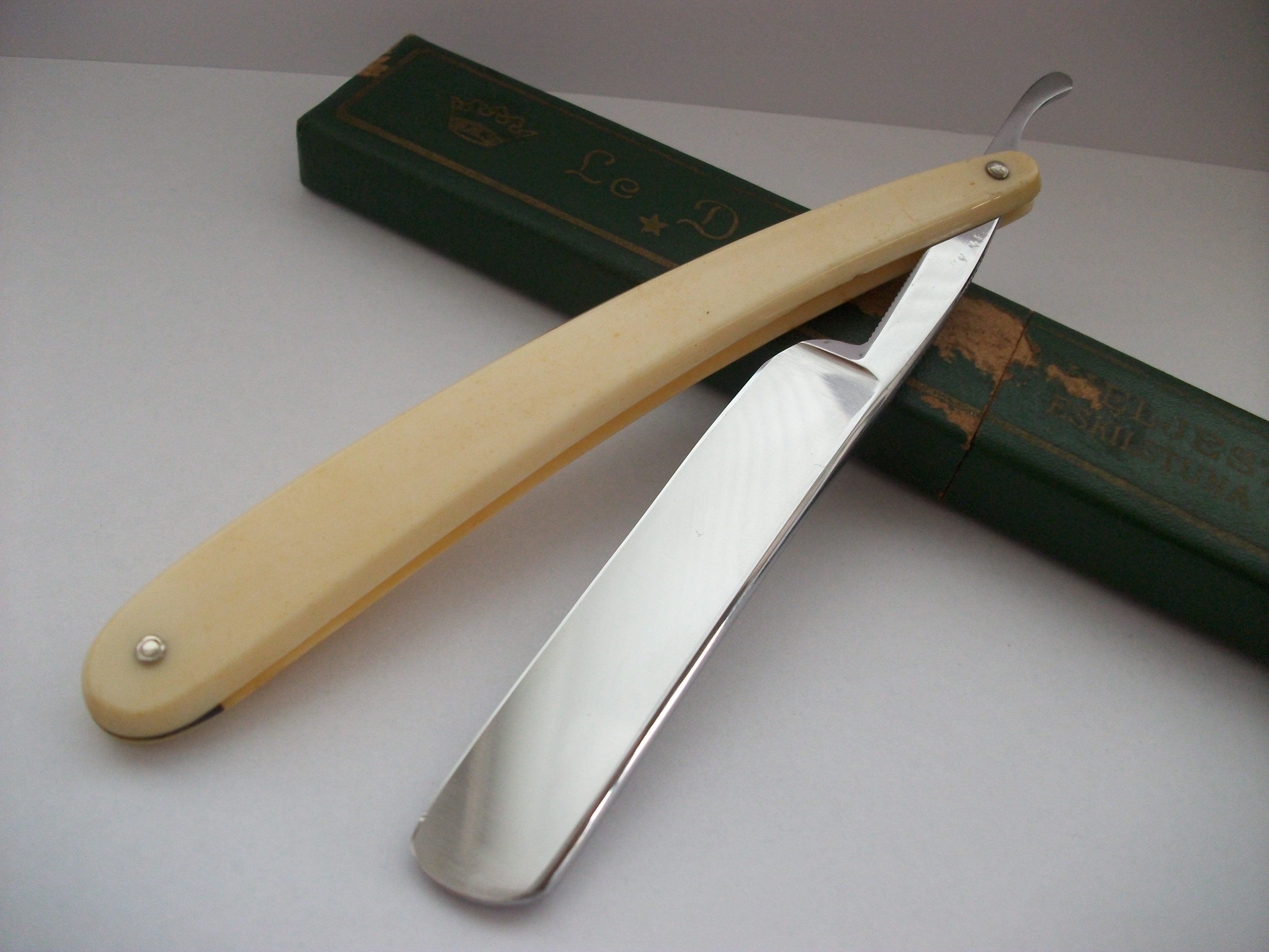 В отличном состоянии и готовая к бритью. Углеродистая сталь, ширина полотна 20мм, длина режущей кромки 75мм. Ручка пластик. В комплекте коробочка от другой модели Хельестранд. Продано Spoiler Show
