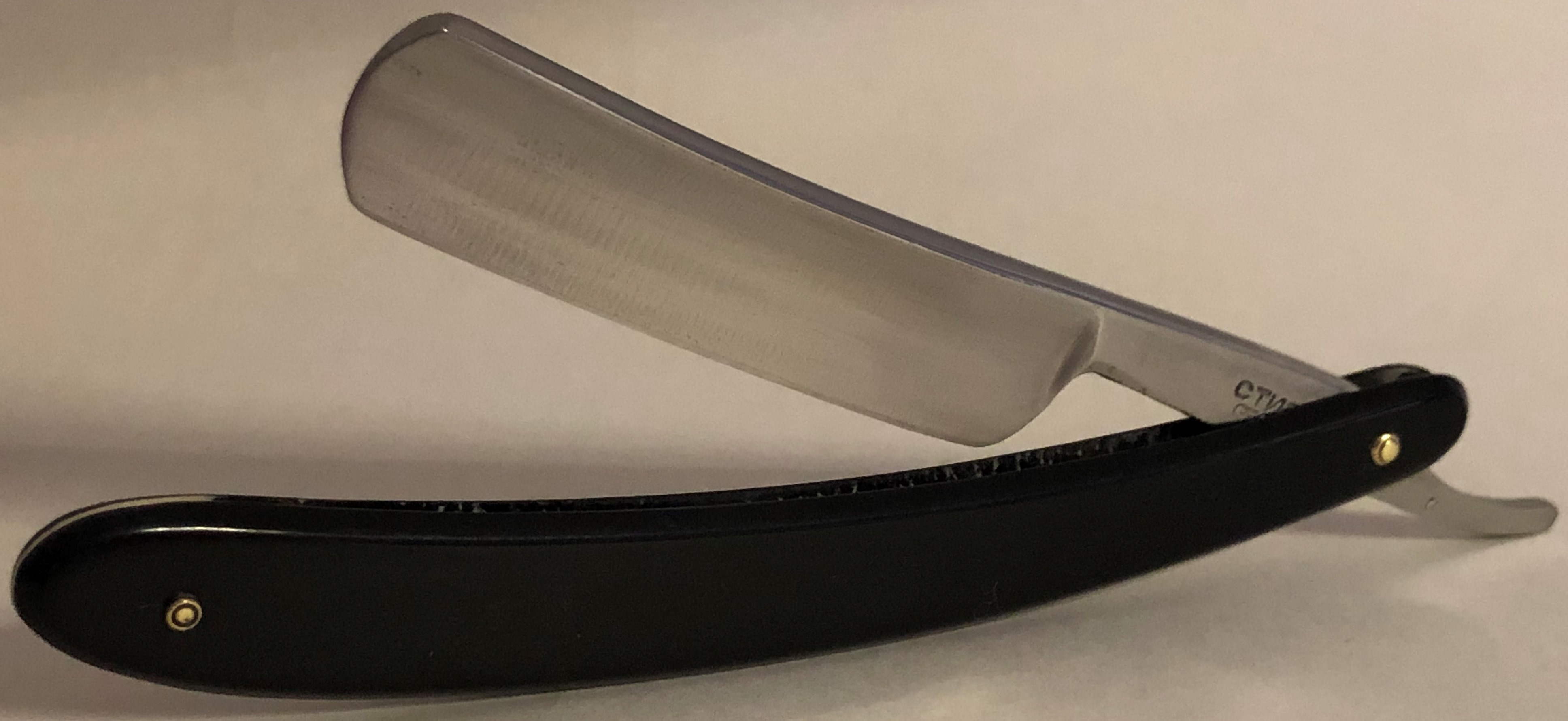 Бритва в очень хорошем состоянии. Бритва разбиралась, было освежено полотно и снова собиралась, с сохранением оригинальных пинов.Сталь и кромка чистые.Идеальная геометрия клинка:кромочка равномерна по всей длине.Тяжёлая бритва , с прекрасной сталью, способной выдать мягкое и комфортное бритьё.Заточена и готова к бритью.