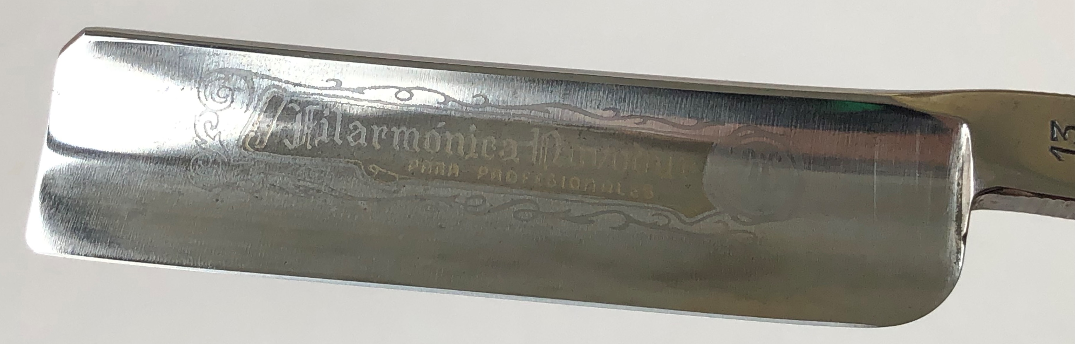 Ширина полотна-20.5 мм. Толщина обушка-6.2 мм. Полная вогнутость. Углеродистая сталь. Середина прошлого века изготовление. Информации по истории этого известного бренда можно почитать в сети, кто не в теме. Легендарная и желанная для всех испанка, которая сейчас достаточно редко попадается в хорошем состоянии.Бритва с минимальными и еле заметными следами от заточных камней.Оригинальная шлифовка полотна лезвия!Родное травление от времени немного потускнело, но все детали четкие.Бритва была разобрана, для удаления следов окисления в районе осевого пина, а также с добавлением внутренних шайб.Идеальная геометрия полотна:кромка равномерна по всей длине и еле заметна.Шикарная "звонкая" углеродка, способная дать бритье, приближенное к эталонному. Родная коробочка! Бритва заточена и готова к бритью. Цена-40500 р с доставкой.ПРОДАН[/b] Spoiler Show