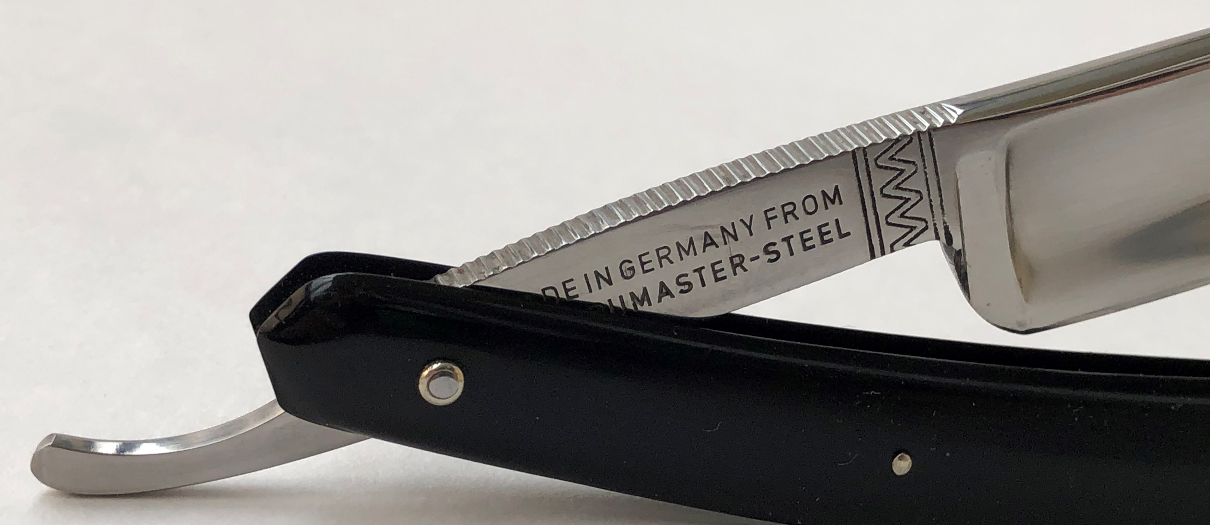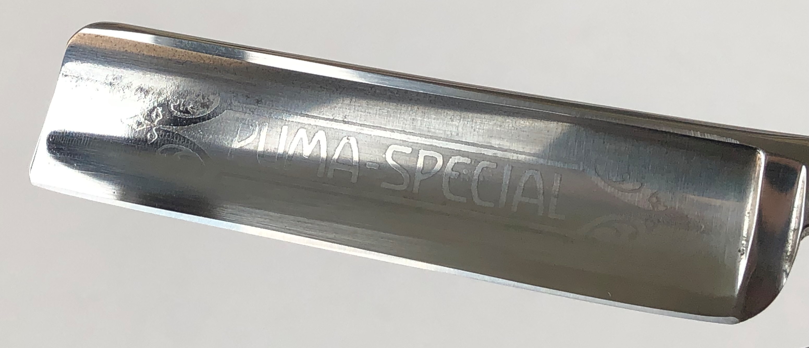 Ширина полотна-20.5 мм. Толщина обушка-5.5 мм. Полная вогнутость. Фирменная углеродистая сталь-PUMASTER. Середина прошлого века. Бритва в хорошем, рабочем состоянии.Была разобрана, для удаления окисления в районе осевого пина.Добавил внутренние шайбы.Родной осевой пин удалось поставить заново.Лицевая сторона имеет небольшой след от взаимодействия металла с пластиком, при многолетнем неиспользовании.Обратную сторону немного освежил и умеренно отполировал.Кромка равномерна по всей длине.Бритва заточена и готова к бритью. Цена-15500 р с доставкой.ПРОДАН Внимание! Важная информация! Spoiler Show