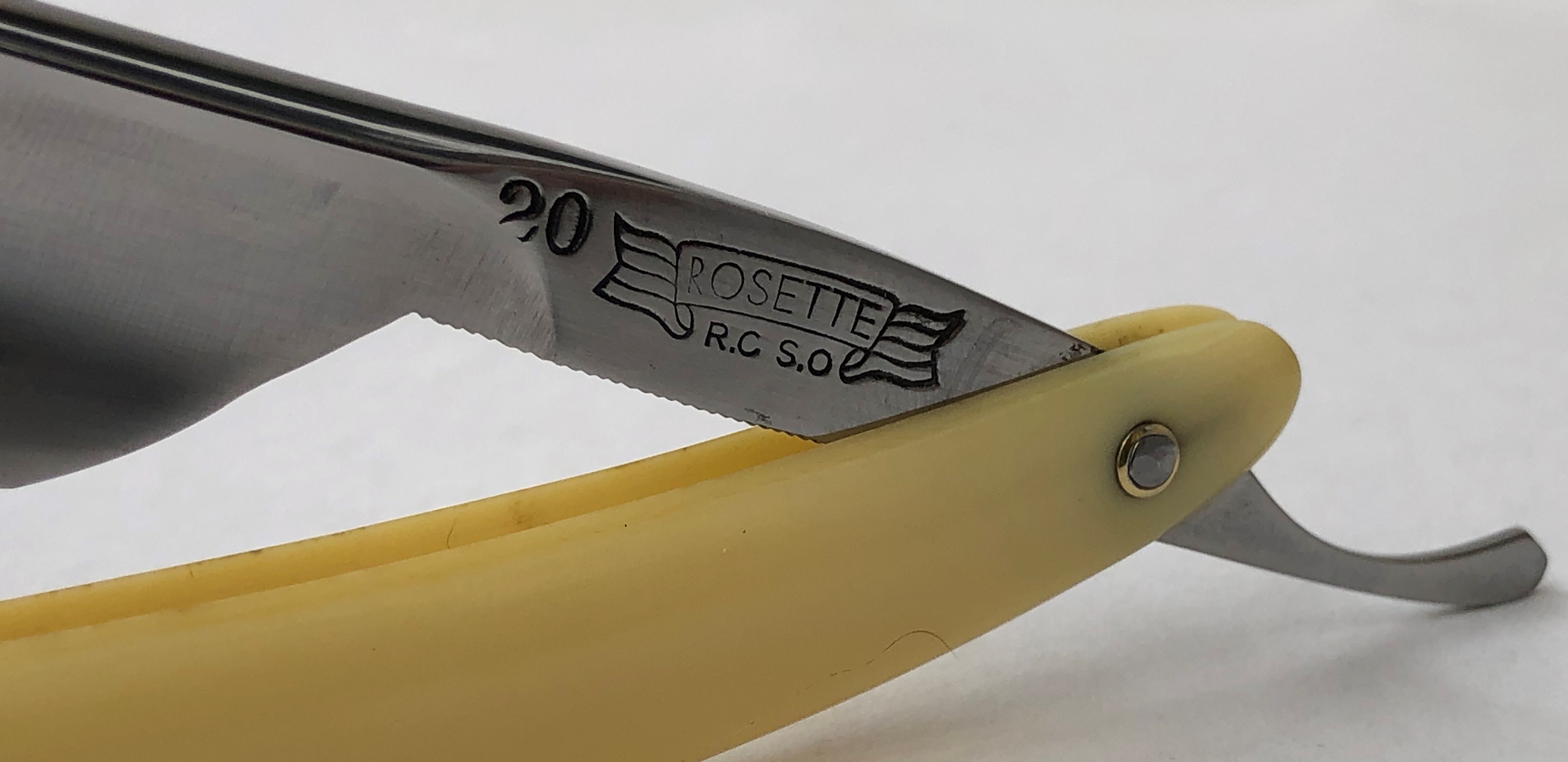 ROSETTE 20,от компании RIBBON. Компания занималась производством профессионального парикмахерского инструмента. Данные линейки бритв были спроектированы Саито специально для обучения учеников парикмахерскому искусству. Ширина полотна-21.3 мм. Толщина обушка-6.3 мм. Длина РК-53.0 мм. Полная вогнутость. Углеродистая сталь. Примерно 50-60-е годы прошлого века. Бритва находится в идеальном состоянии и без следов пользования.Была разобрана для придания металла былого блеска, царапин и других минимальных дефектов. Идеальная геометрия полотна:кромочка равномерна по всей длине.Шикарная , удобная укороченная форма лезвия, с прекрасной сталью, способной выдавать качественное и чистое бритье. Не пропустите редкую и стоящую вещь, на все времена. Заточена и готова к бритью. Цена-22500 р с доставкой.ПРОДАН Spoiler Show