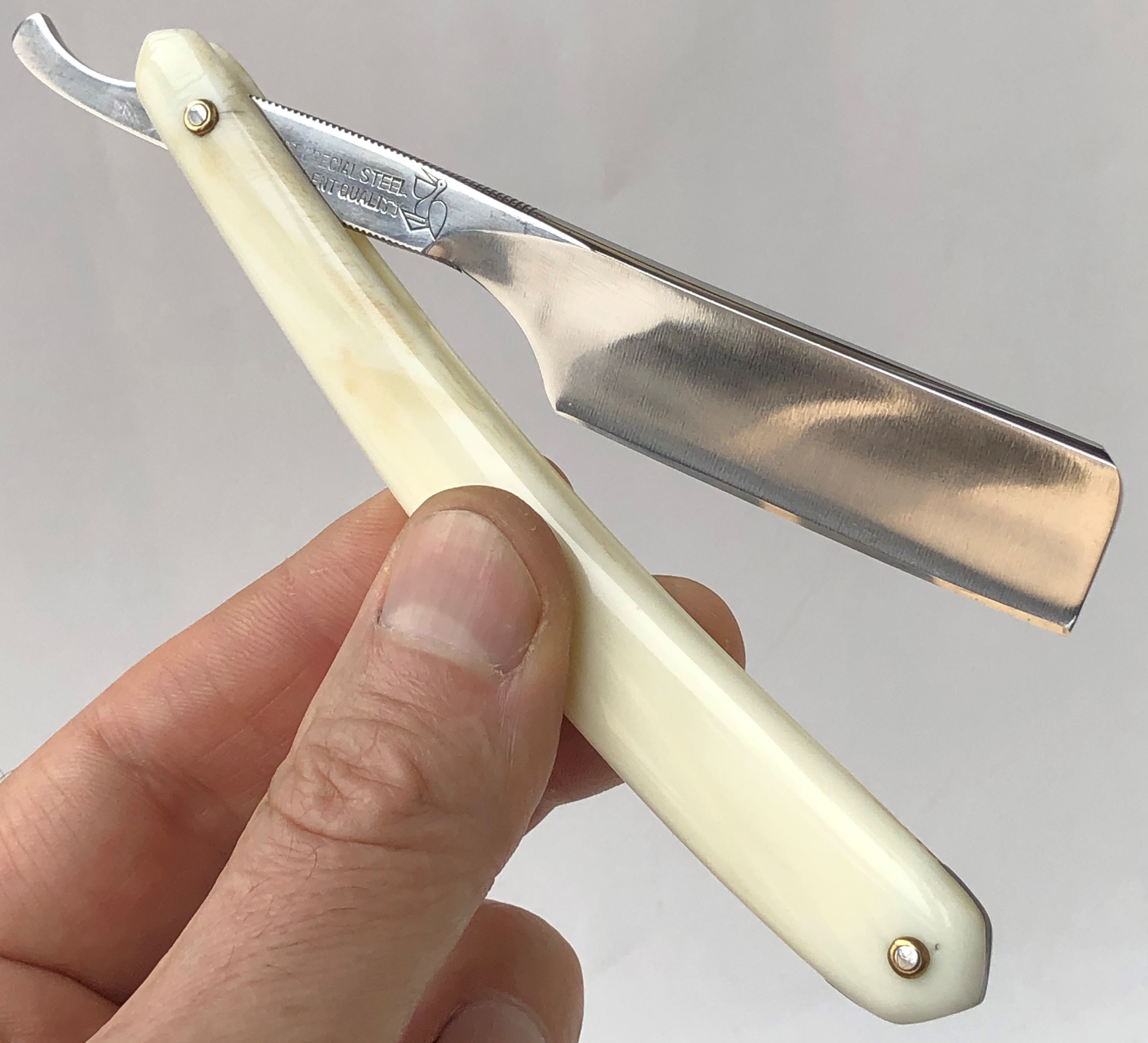 Ширина полотна-19.1 мм. Толщина обушка-4.5 мм. Полная вогнутость. Углеродистая сталь. Бритва в пользовании не была, но пришлось произвести минимальные, косметические работы.Были добавлены внутренние шайбы.Хорошая геометрия клинка.Сталь чистая, без видимых дефектов. Заточена и готова к бритью. Цена-4850 р с доставкой.ПРОДАН Spoiler Show Spoiler Show Spoiler Show