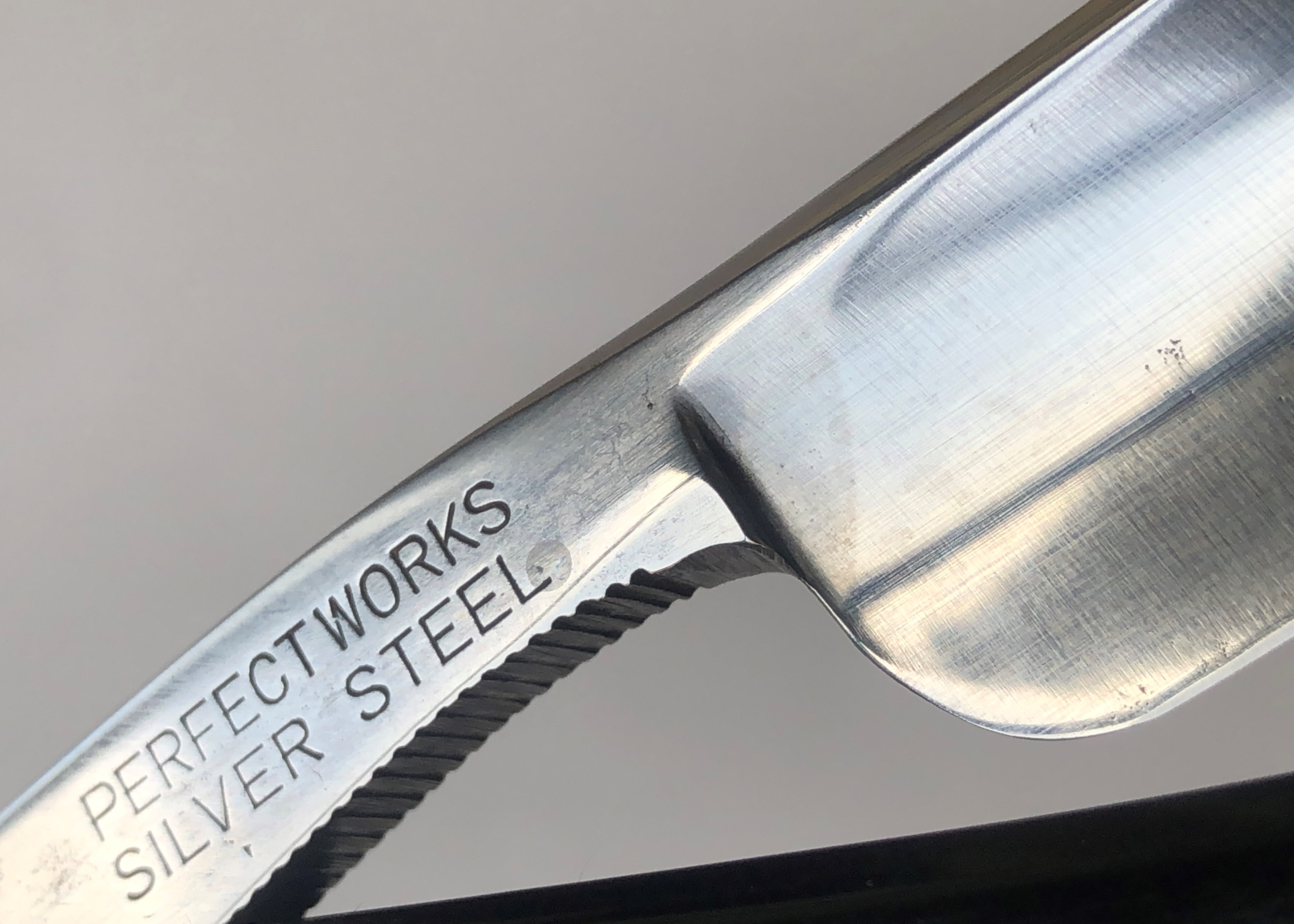 Размер бритвы-6/8 Толщина обушка-6.0 мм. Полная вогнутость. "Серебряная" углеродистая сталь, как наиболее удачная для бритвенных задач. Бритва изготовлена после 1941 года, но примерно 50-60- е годы. Бритва находится в состоянии близком к идеальному.Без следов пользования.Была разобрана, для удаления очага окисления в районе осевого пина. Сама осевая заклепка была заново удачно установлена .Идеальная геометрия полотна-кромочка равномерна по всей длине. В районе пятки можно увидеть эффектный след от зонной закалки клинка, по примеру бритв Камиджо Юкио. Заточена и готова к бритью. Цена-17500 р с доставкой.ПРОДАН Spoiler Show
