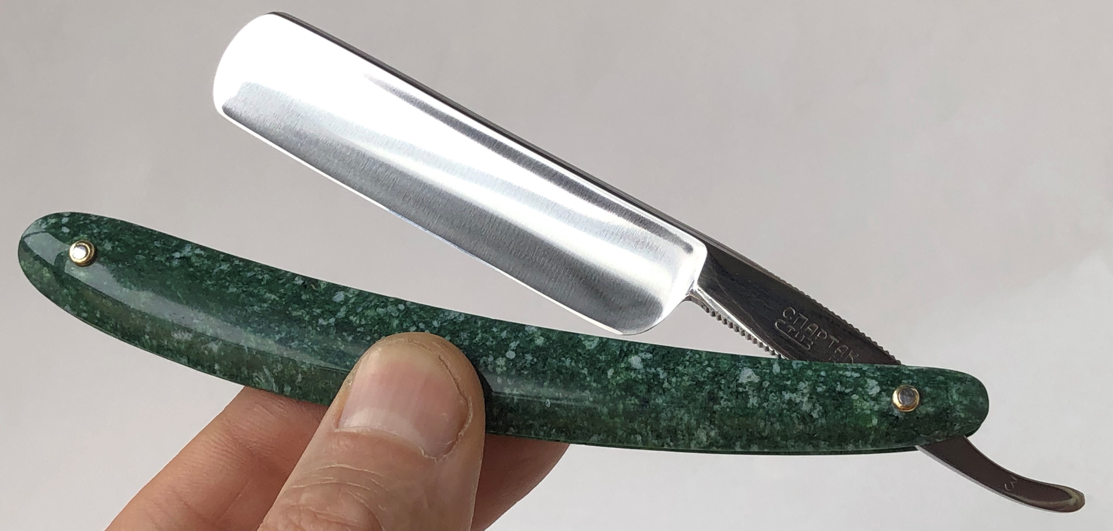 Ширина полотна-17.8 или 5/8 Толщина обушка-4.3 мм. Экстра полная вогнутость. Углеродистая сталь. Первая половина 20-го века производства. Бритва в состоянии близком к идеальному. Без следов пользования.Была разобрана для минимальных косметических работ,с сохранением оригинальных пинов.Идеальная геометрия клинка:кромочка равномерна по всей длине.Сталь чистая от разного рода видимых дефектов. На мой взгляд, подобная форма и размер клинка наиболее удачная и удобная для всего спектра любителей клинковой бритвы. Даже опытный пользователь наиболее оценит все преимущества такой бритвы. Бритва была заточена и лично протестирована. По бритью только положительные впечатления и получение удовольствия от процесса. Сталь качественная, не такая сухая, как на большинстве немецких бритв. Приятный "шелест" сбриваемой щетины. В итоге, бритье чистое, мягкое и без раздражения. Цена-12500 р с доставкой.ПРОДАН Spoiler Show