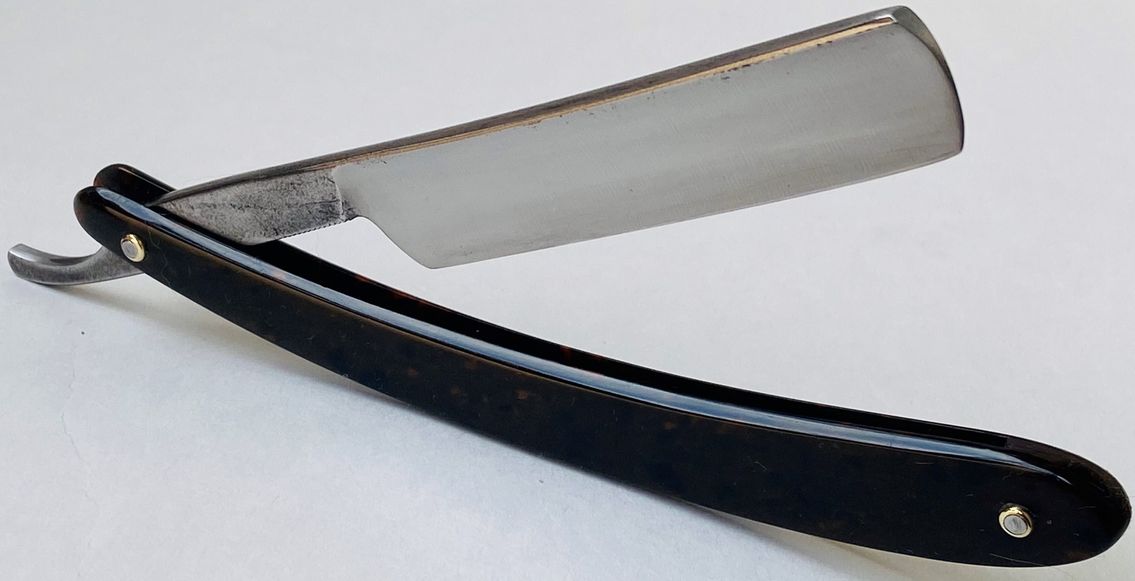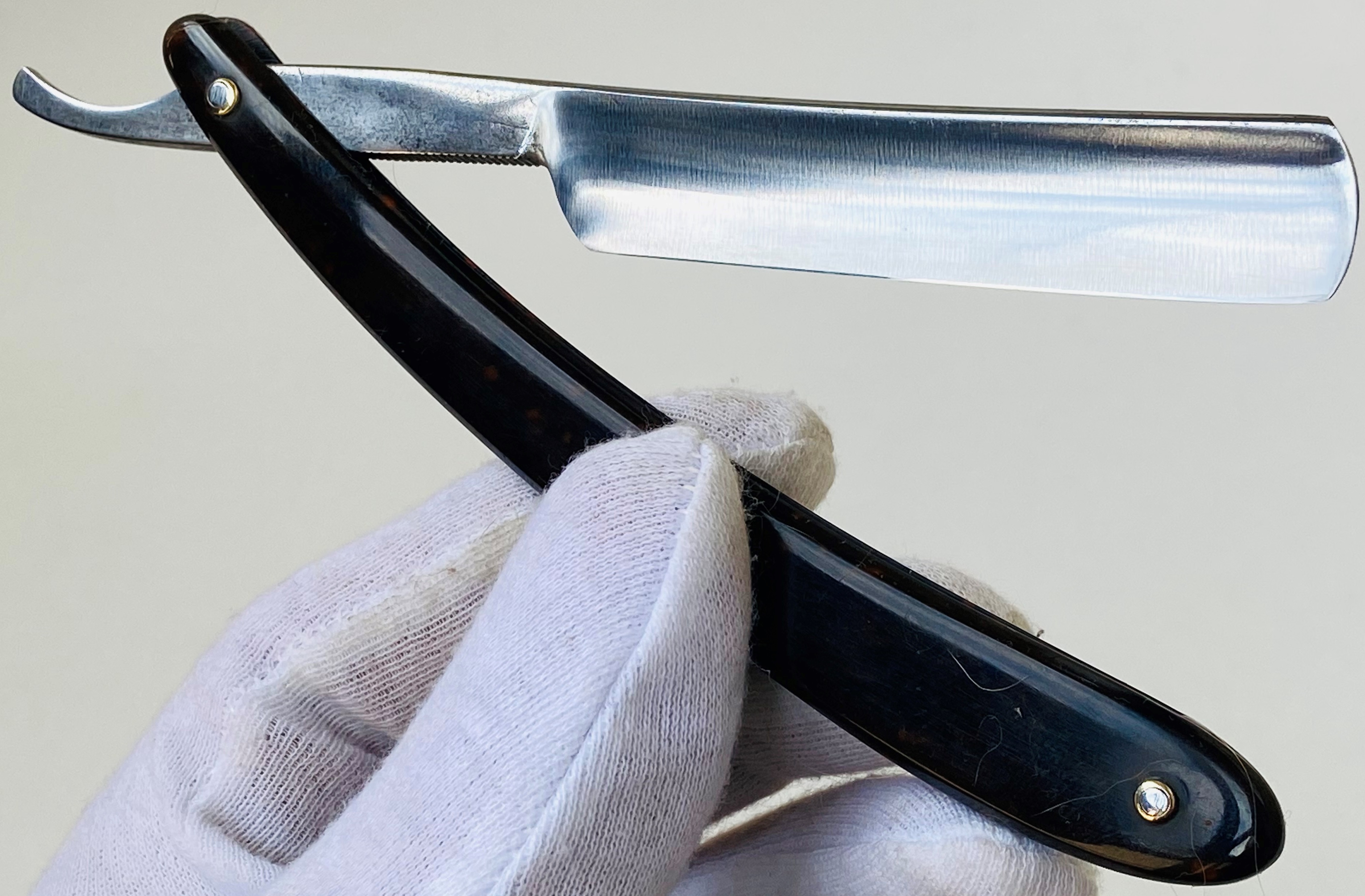 Бритва не имеет следов от заточных камней,т.е. можно предположить, что в пользовании не была.Умеренная шлифовка и полировка полотна.Шикарную патину на эрле и обушке немного оставил, предварительно убрав лишний налёт. Идеальная геометрия клинка:кромочка равномерна по всей длине и еле заметна.Новые втулки и добавленные внутренние шайбы. Ручка отполирована и находится в прекрасном состоянии.Красивая, достаточно редкая и относительно недорогая бритва в коллекцию и для бритья.