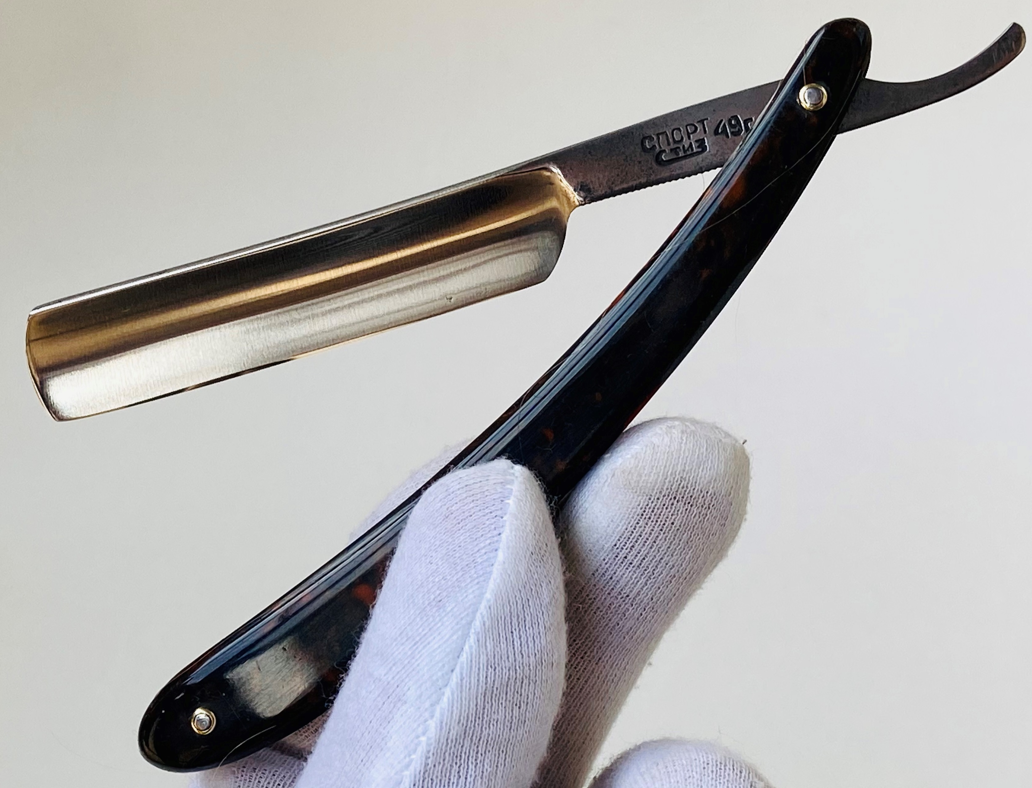 Нечастая опасная бритва "сталинских" времен:Стиз "СПОРТ".1949 года выпуска.