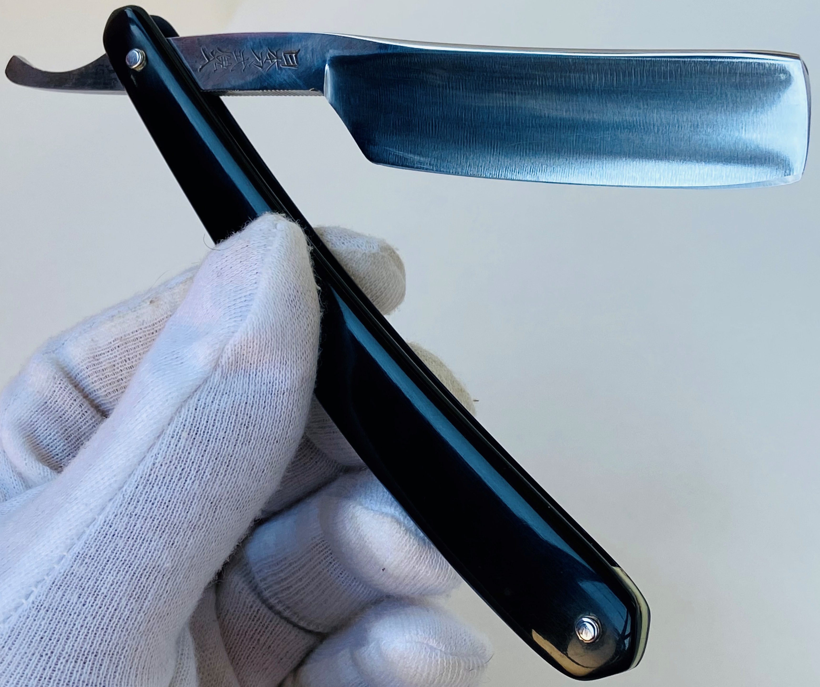 Бритва из старой японской парикмахерской. Специально, по "барберски"скошена немного пятка,чтобы не точить лишний метал в месте,которое не принимает участия в процессе брития.