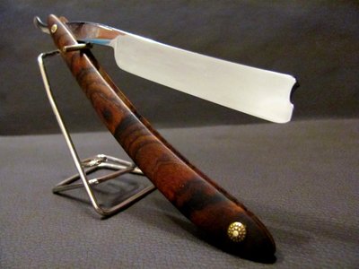 Историю компании можно найти здесь на форуме, воспользовавшись поиском. Краткая характеристика: Ширина полотна 15 мм, обух 4,8 мм, полотно-полуклин. Ручка: ручная работа нашего мастера , пины красивые, дерево просто сказка, ручка сделана на высшем уровне. В комплект входит родной чехол, который всетаки дожил до нашего времени, что является не частым событием. Бритва заточена и готова к бритью. Пяточка не поддалась заточке, видимо сказалась "особенность" геометрии обушка. Цена реставрированной , одетую в красивейшую оправу бритвы знаменитого производителя 120$ включая доставку по почте. ПРОДАНА George Wostenholm Show