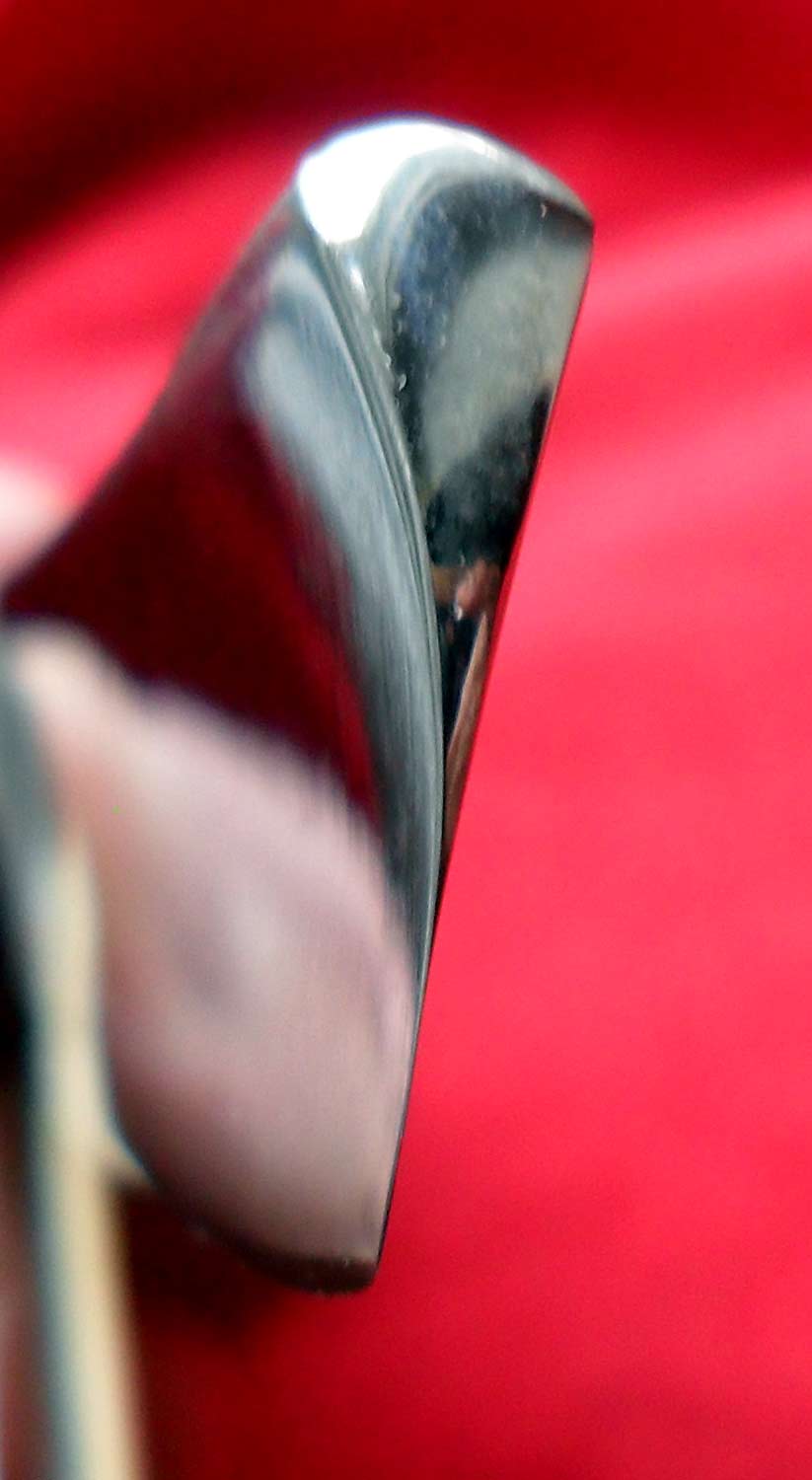 Надпись на полотне: THE SILVER RINGER REAL GERMAN HOLLOW GROUND Ручка - целлулоид, неплохая имитация слоновой кости. Состояние ручки неплохое, но возле заклепки есть трещинка (видно на фото). Но трещина не сквозная и при нормальной эксплуатации проблем не возникнет. Широкая и мощная бритва, обух с узором. Сталь немного необычная, я бы сказал, что немного тверже, чем обычно и при бритье меньше садится, хотя ощущения субъективные. Возможно это связано с надписью "Silver Ringer". Естесственно, заточена и полностью готова к бритью. Ширина полотна 19 мм, толщина в обухе 5 мм. Spoiler Show