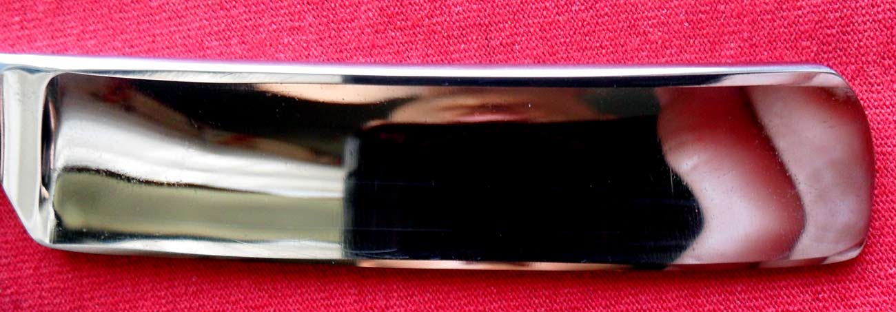 Ручка и пины родные, без проблем. На бритве довольно необычная сталь, заточка потребовала массу времени. Я так понимаю, что сталь высокой твердости, раньше я встречал только 1-2 бритвы со сталью такой твердости. В бритье неплоха, мне понравилась немного больше, чем пара моих прошлых советских бритв 60-х годов, хотя и те были неплохи. Естесственно, заточена и полностью готова к бритью. Также к бритве идет родной чехол в неплохом состоянии. Ширина полотна 17,5 мм, толщина в обухе 4,5 мм.