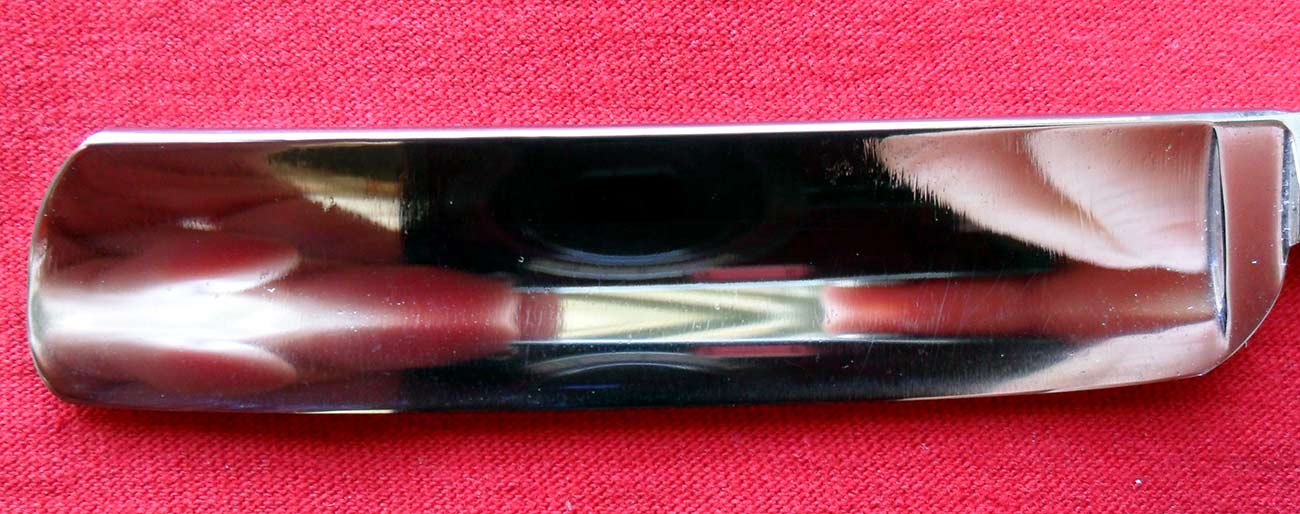 Сведения о производителе: http://britva.ru/forum/viewtopic.php?f= ... 562#p50562" onclick="window.open(this.href);return false; Предполагаю, что бритва относится к 20-30-м годам XX века. Ручка - эбонит. Очень тонкосведенный холлоу граунд, прекрасно точится. Из-за своей тонкости при бритье ведет себя очень деликатно, бритье мягкое и комфортное. Естесственно, заточена и полностью готова к бритью. Ширина полотна 18 мм, толщина в обухе 4,5 мм.