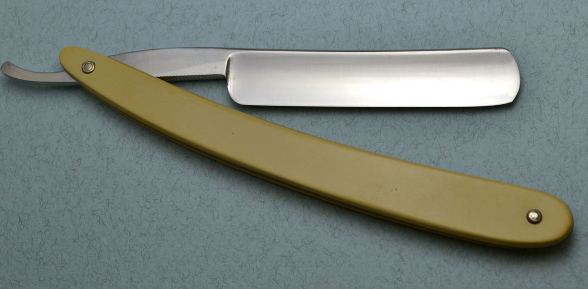 Сведения о производителе: http://britva.ru/forum/viewtopic.php?f= ... tti#p54359" onclick="window.open(this.href);return false; Ручка из целлулоида, в отличном состоянии. Обушок граненый. Заточена и полностью готова к бритью. Ширина полотна 19.5 мм, толщина в обушке 5 мм.