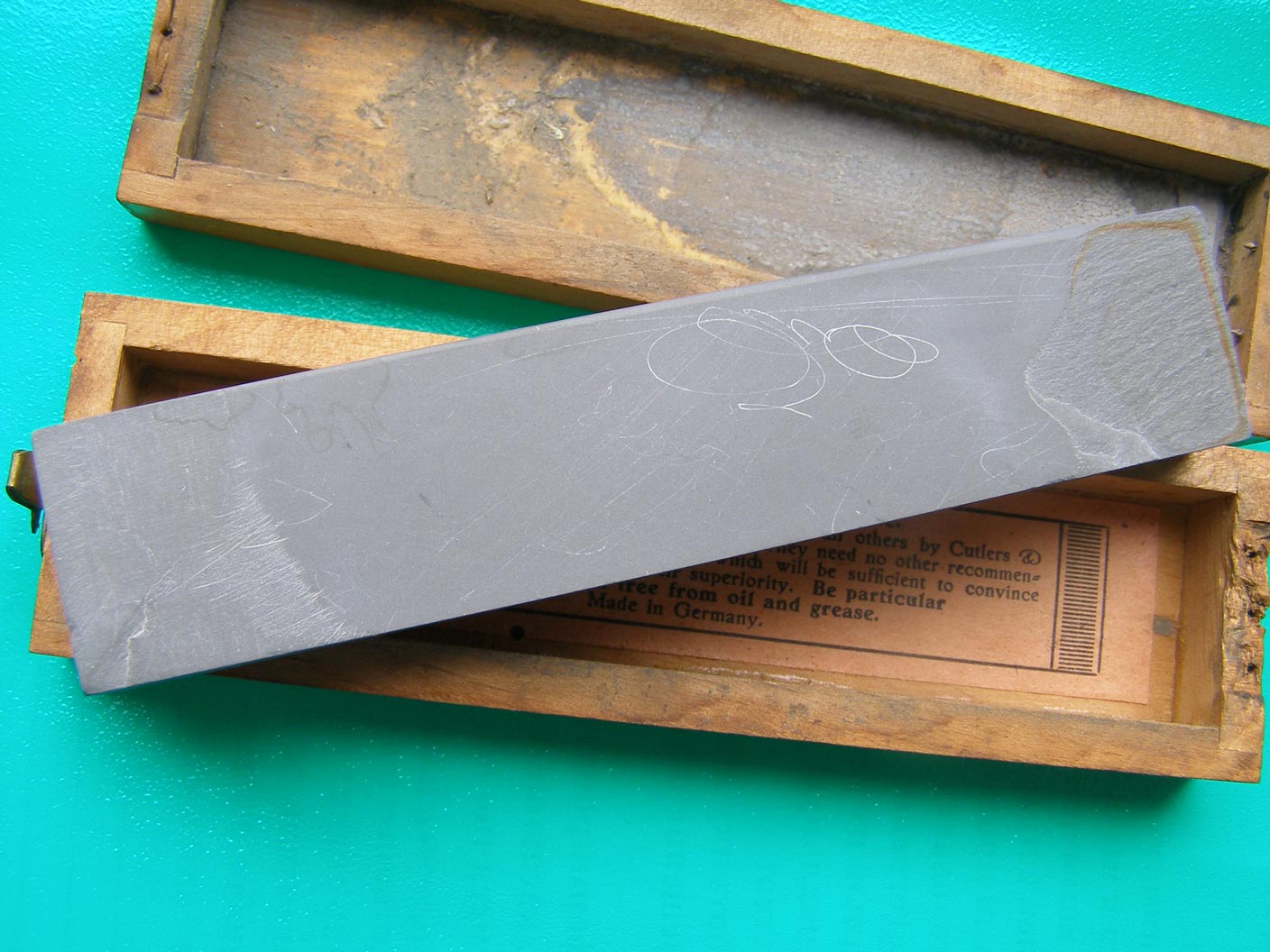 | Текущее время: 31.10.25, 10:53 Продаётся от mantisМодераторы: Олег Бритва, Модераторы Re: Продаётся от mantisлейтенант Случайно сфотографировал не ту коробку. Продам The Genuine Thuringian Water Hone Очень плотный натуральный доводочный камень , размер 125х26х15 мм. На коробке отломана петля. Цена 80$ пересылка за мой счёт Продан