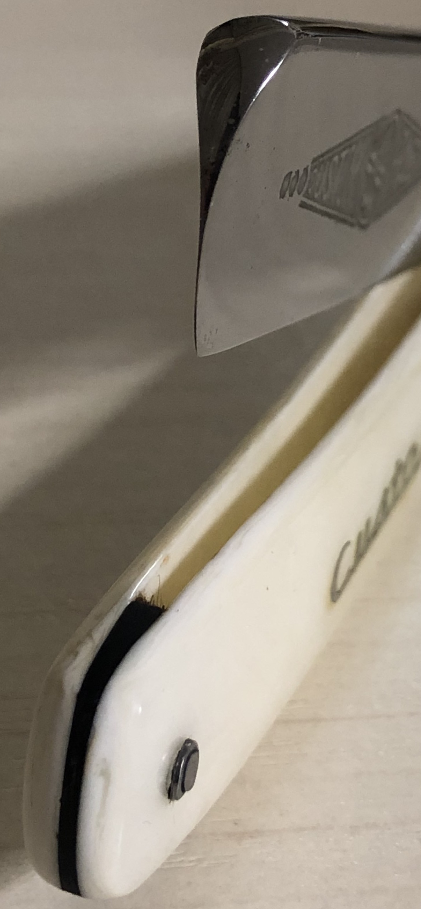 Продаётся от wrenНе часто встречающаяся у меня бритва, от самого известного французского бренда : THIERS-ISSARD 69 Ширина полотна-20.5 мм Толщина обушка-5.5 мм Полная вогнутость. Углеродистая сталь. Середина 20-го столетия. Бритва в пользовании не была, но я бритву разобрал,перебрал кривые пины, сохранив родные шайбы и немного освежил клинок от патины. Состояние нетронутой.Сталь и кромка чистые, без видимых дефектов.Идеальная геометрия полотна:кромочка равномерна по всей длине.Ручка родная, исполнена в традиционном французском стиле.Отличная"звонкая" сталь, мягче, чем стали новодельных Иссардов,способна выдавать чистое и приятное бритьё. Будет идеальным вариантом для новичка и просто, в коллекцию.Не пропустите знаменитого француза в прекрасном состоянии.. Заточена и готова к бритью. Цена-11500 р с доставкой.[/b][/QUOTE] ПРОДАН Внимание! Важная информация! Spoiler Show