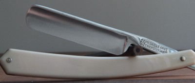 Осталась последняя пора Иссардов: 6/8 и Гном 5/8. Последний шанс забрать пару бритв от известного производителя, разных моделей и форм лезвия и в идеальном состоянии. Вот такого интересного CARL RADER SOLINGEN предложу. Кучку подобных бритв уже раньше выставлял http://britva.ru/forum/viewtopic.php?f= ... 9&start=80" onclick="window.open(this.href);return false; Ширина полотна-21мм Толщина обушка-5.5мм Полная вогнутость. Бритва непользованная и в очень хорошем сохране.Не ремонтировалась и не разбиралась. Исключение-небольшое пятнашко окисления у носика, от долгого хранения.Чистить также не стал, чтобы сохранить картинку и оставить заводской гринд. Удобная, трёх-пиновая ручка. Удобный, красивый экземпляр. Будет заточена впервые. Право первой ночи предоставлено счастливчику-новому хозяину. Цена-8500 с доставкой.ПРОДАН Spoiler Show
