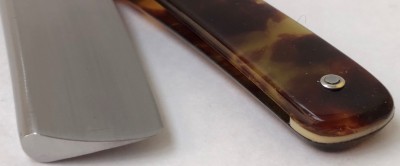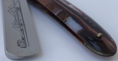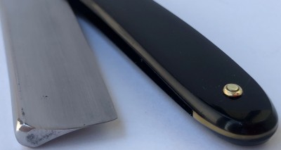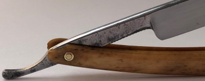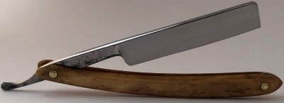 Ширина полотна-16 мм. Толщина обушка-4.5 мм. Форма лезвия ближе к полу клину. Бритва в очень хорошем состоянии, без активных следов пользования. Была разобрана, чтобы почистить район осевого пина, но в тоже время сохранив красивую старинную патину на эрле, что придаёт оригинальный вид, соответствующий преклонному возрасту бритвы.Что интересно в данном экземпляре, так эта шикарная оправа из натуральной кости. Такую ручку вижу впервые на таких бритвах. Кость плотная, без трещин, завораживающего "медового" оттенка.Была заново отполирована,пины поменяны на немецкие втулки.Само полотно косметически отшлифовано и умеренно отполировано.Очень красивая и редкая бритва. Заточена и готова к бритью. Не пропустите редкую вещь! Цена-5500 р с доставкой. ПРОДАН Spoiler Show Spoiler Show