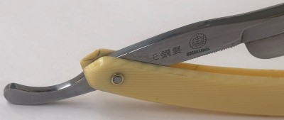 Ширина полотна-20 мм. Толщина обушка-5.5 мм. Углеродистая сталь. Форма лезвия-1/2 клин. Середина 20-го века. Интересная бритва, с достаточно редким для японца парикмахерским вырезом. Без следов пользования.Бритва была разобрана чтобы немного очистить район осевого пина.Сейчас выглядит как новая.Идеальная геометрия полотна:кромочка равномерна по всей длине.Среднего размера, но за счет своей формы лезвия,достаточно увесистая.Красивый и надёжный инструмент.Заточена и готова к бритью. Цена-11500 р с доставкой. ПРОДАН Внимание! Важная информация! Spoiler Show