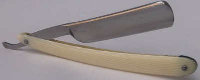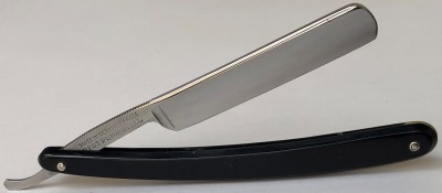 Бритва в очень хорошем состоянии.Высококачественный, профессиональный парикмахерский инструмент.Была разобрана, немного приведена в порядок,умеренно отполирована и снова собрана.Без активных следов пользования.Сталь и кромка чистые от разного рода видимых дефектов. Идеальная геометрия полотна.Родные пины были перебраны и заново установлены.Удобная форма клинка, с длинным эрлем будет приоритетной именно для новичка, да и не только.Заточена и готова к бритью.