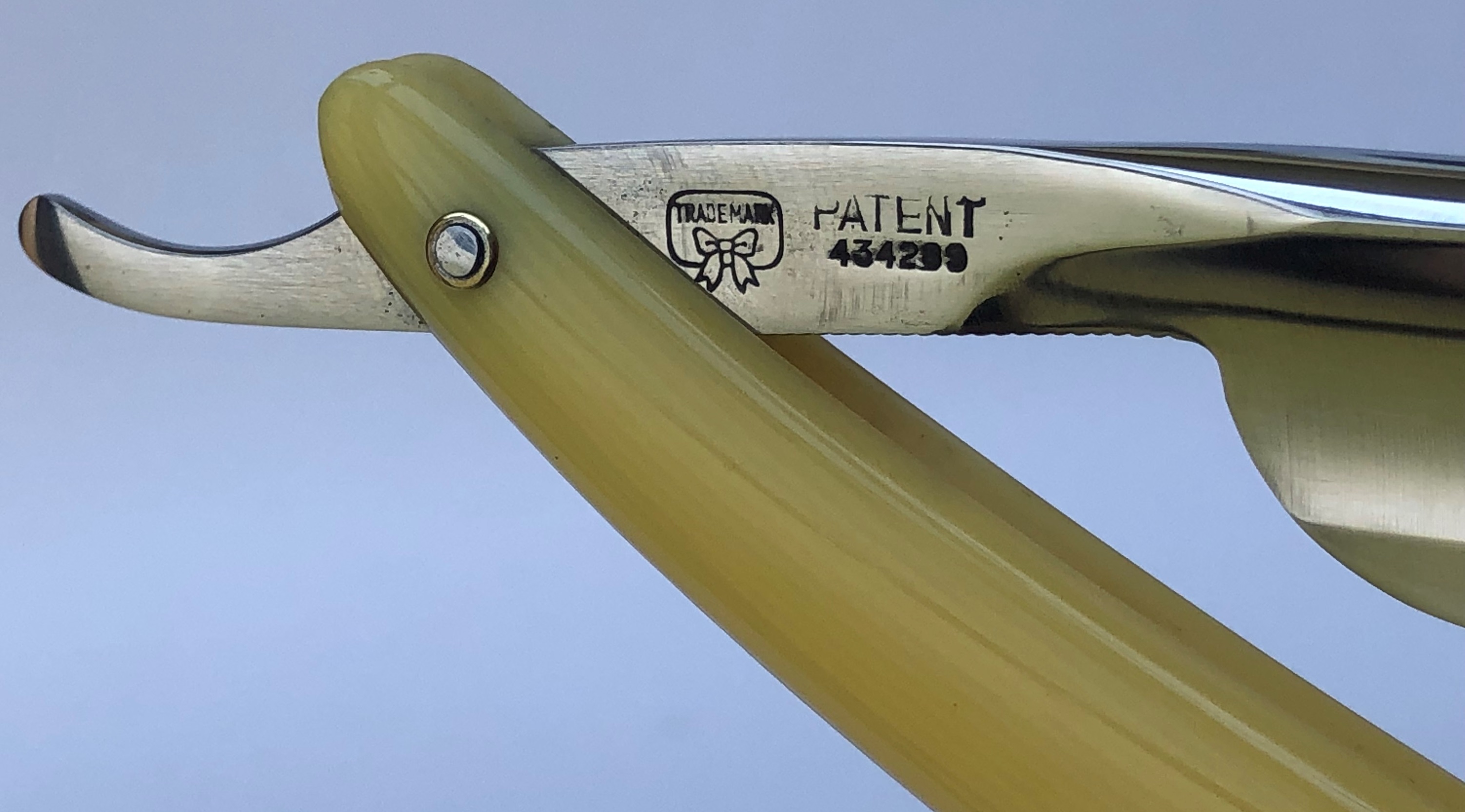 Бритва из набора "7 ДНЕЙ". Исходя из своих наблюдений именно бритвы из таких наборов имели более дорогую комплектацию, в виде оправ из кости или слоновой кости, коробок из ценных пород дерева,а также элегантные формы клинков.