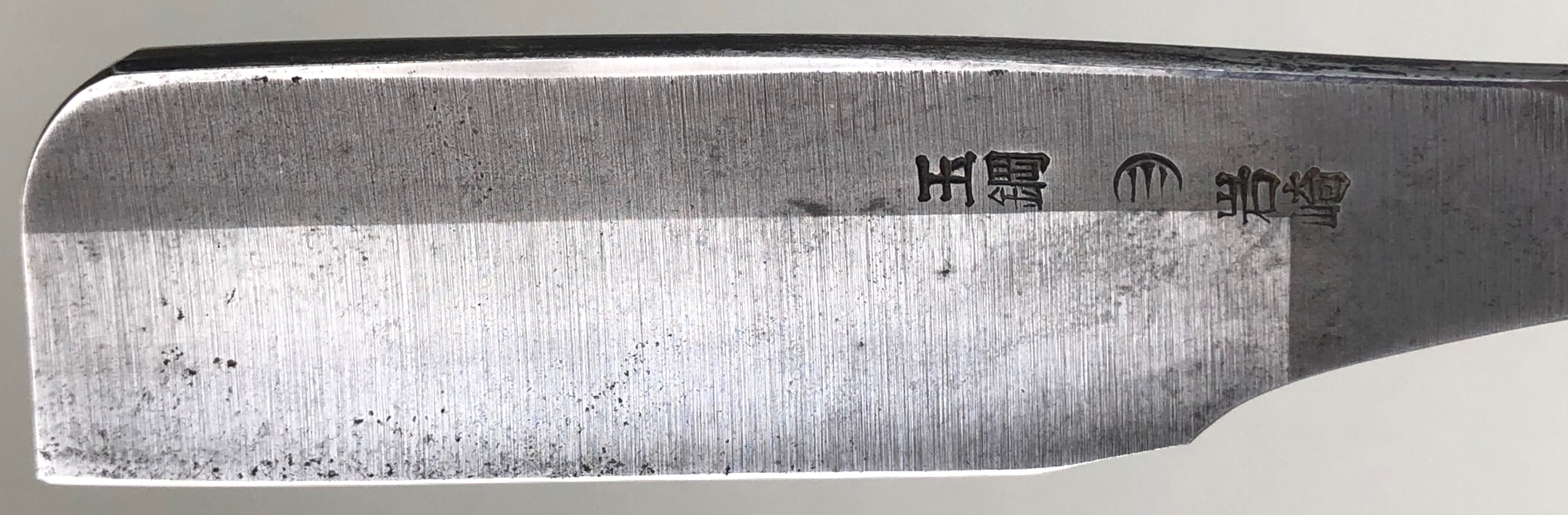 Бритва с минимальными следами пользования.По всей видимости была заточена однажды, а потом просто доводилась на финишниках.Сторона "ура" имеет прекрасную многолетнюю патину.Сторона "омоте" оригинальный грубый гринд.Идеальная геометрия изготовления. Кромочка на "ура" равномерная и еле заметна.На "омоте" шире, но также равномерна по всей длине.Сама сталь Тамахагане каким то магическим образом привлекает всех любителей японской Бритвы и заставляет искать по всему миру то, что сейчас еще где то осталось от этой самой известной семьи.С бритвой ничего не делал, а только тряпочкой протер, как бы это смешно не звучало для многих посвящённых товарищей..
