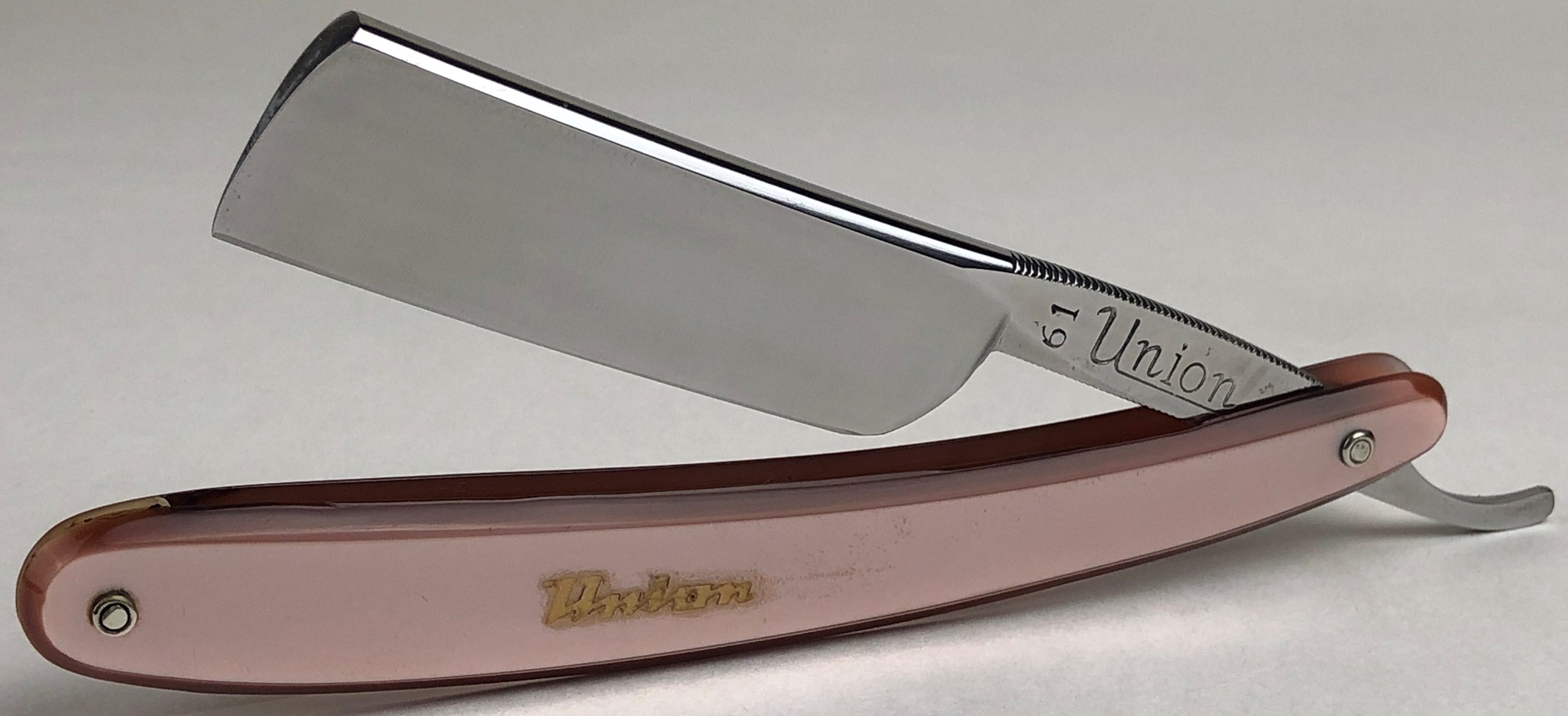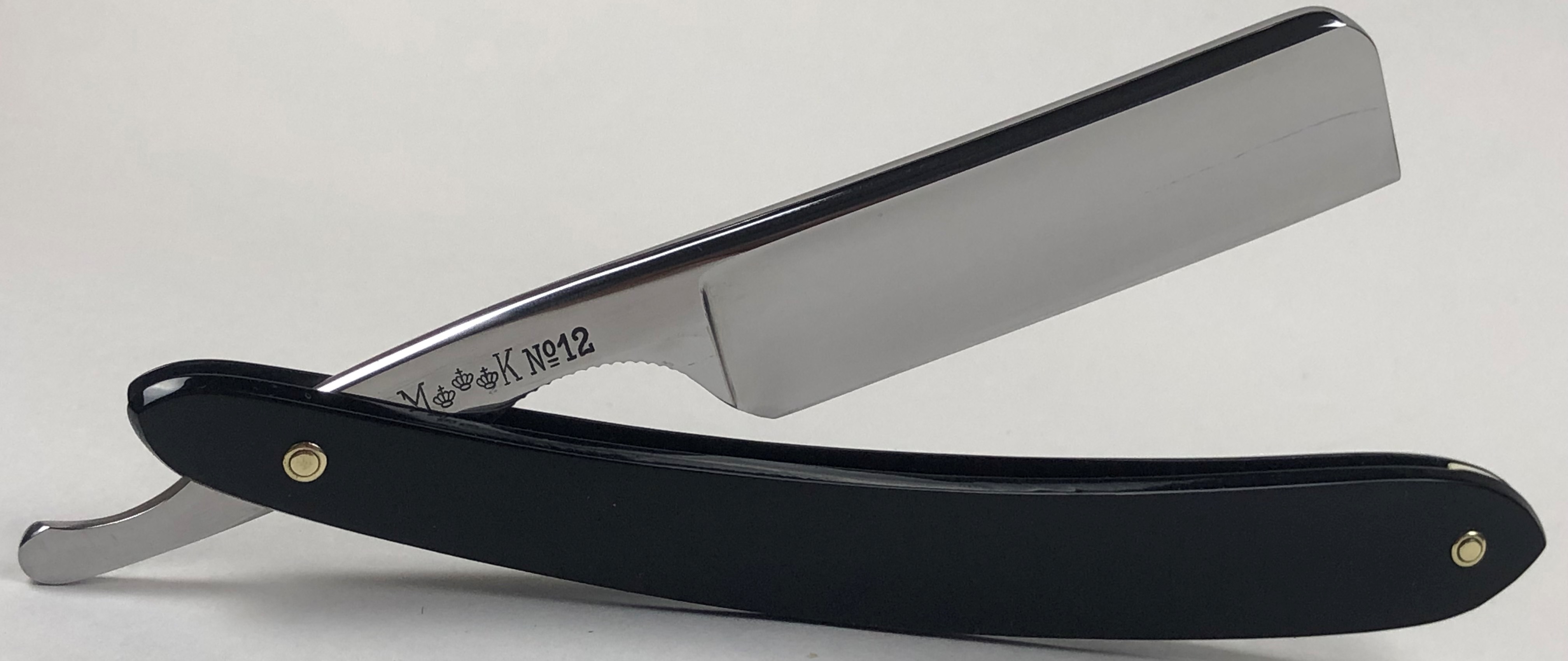 Бритва в очень хорошем состоянии, близком к идеальному.Без следов пользования.Была разобрана, немного освежено полотно и почищен район осевого пина и снова собрана, с заменой оригинальных пинов на немецкие двух-цветные втулки.Идеальная геометрия клинка:кромочка равномерна по всей длине.Сталь чистая , без дефектов. Бритва очень удобна для обучения не только как брить, но и как бриться.Укороченное полотно даёт возможность легко подобраться в самые труднодоступные места.Бритва заточена и готова к пользованию.