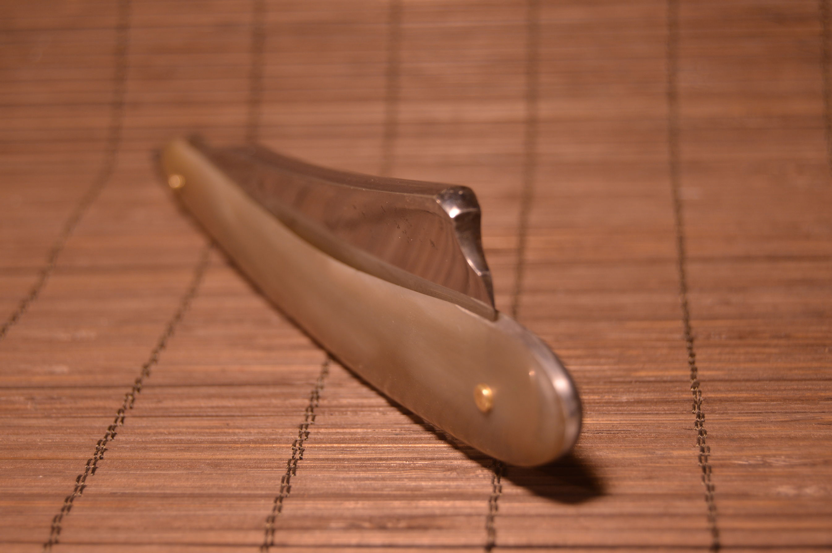 Re: Продаётся от artemarut1 Wade&Butcher-ы и не только!Frederick Reynolds Бритва известного английского производителя, новая ручка из полупрозрачного рога сделана по размерам оригинальных, под светом можно увидеть все изнутри ручки, закрывается строго по центру, линия режущей кромки симметричная, что характерно для клинов с хорошей геометрией, не было регринда - только легкая чистка, на полотне видны надписи производителя, к сожалению трудно сфотографировать. Размер 20+/6мм. Цена 9900р. включая заточку.