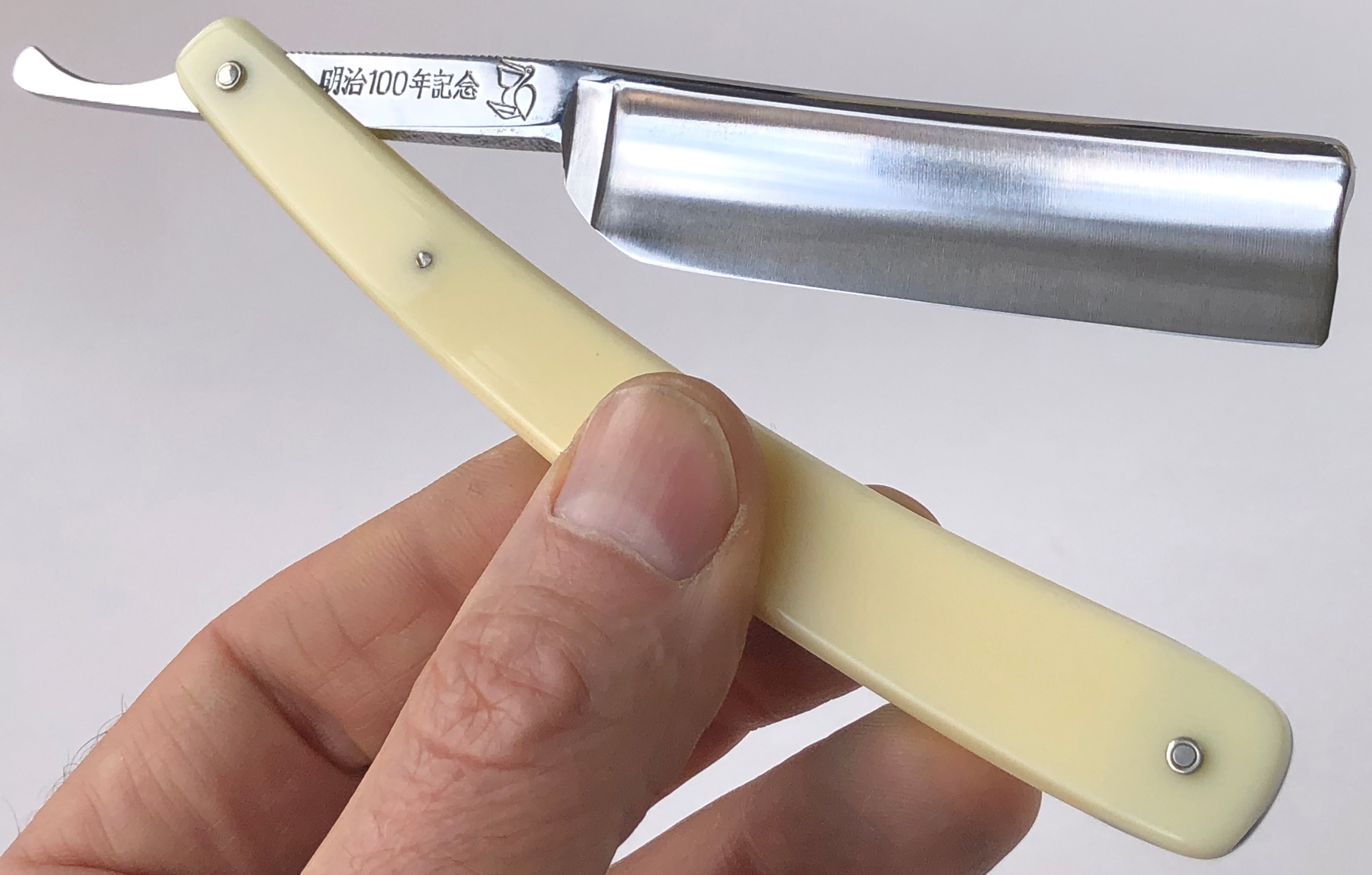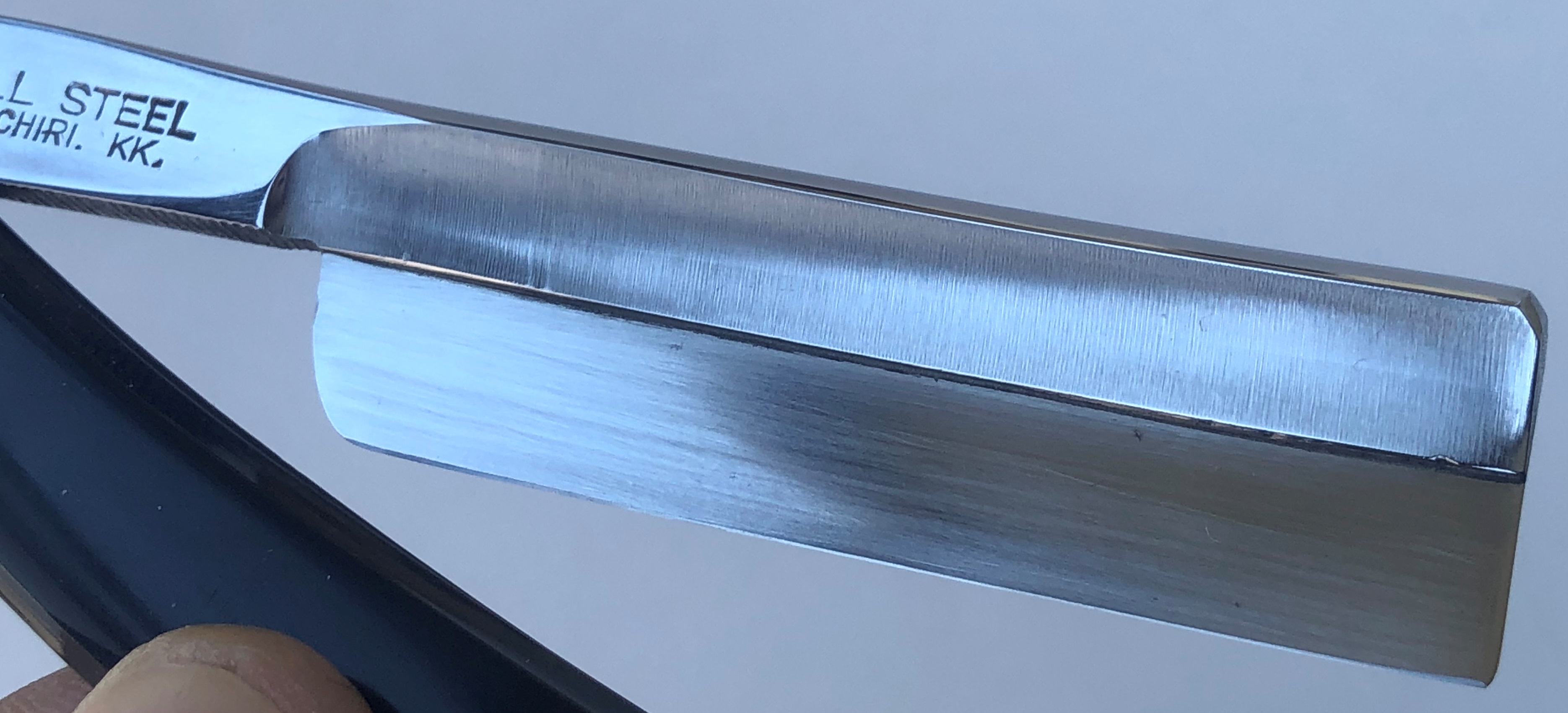 Бритва исключительного состояния.Как будто вчера с завода.Была оттерта от масла с консервации.Ничего не разбиралось и не ремонтировалось. Никаких работ не производилось, даже ручной полировки. Идеальная геометрия клинка:кромочка равномерна по всей длине и практически незаметна.За счет своего толстого обушка бритва достаточно тяжелая и хорошо ощущается в руках.Сама бритва представляет классическую японскую модель, созданную в евро стиле.Коробочка тоже новая, но от другой бритвы.Перед отправкой будет переточена до состояния комфортного бритья.