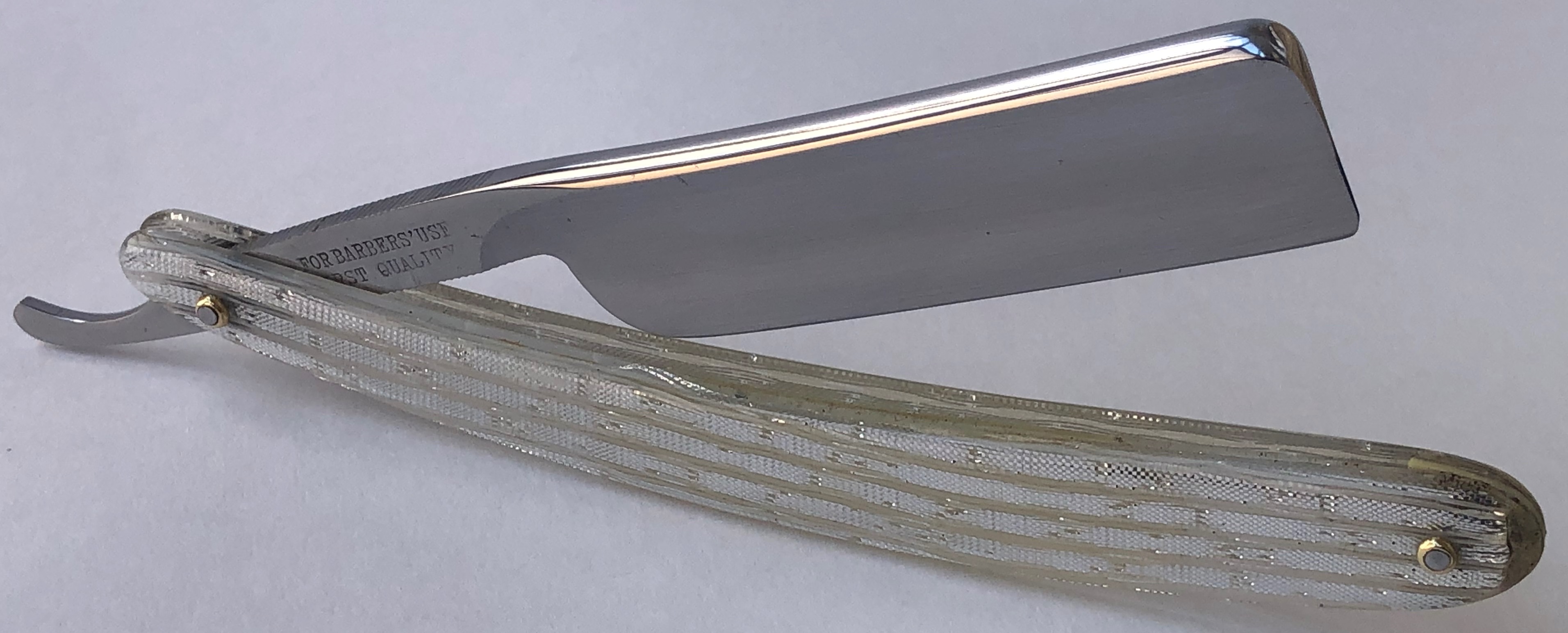 Профессиональная парикмахерская бритва,находится в идеальном и нетронутом состоянии.Ничего не разбиралось и не ремонтировалось.Все в оригинале.Остатки масла с консервации были удалены.Сталь чистая, без дефектов.Кромочка равномерна по всей длине и практически незаметна.Красивая и не часто встречающаяся бритва на все времена. Не пропустите.