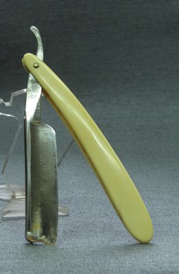 Бритва без сколов трещин и иных дефектов. Ручка пластик, закрывается ровно и очень плотно, не выпадывает. Бритва из весьма твердой стали, "углеродка". Вогнутость - почти клин. Бритва заточена и готова к бритью (требуется регулярная правка на ремне). Весьма не плохой и не дорогой вариант для пробы опасного бритья.