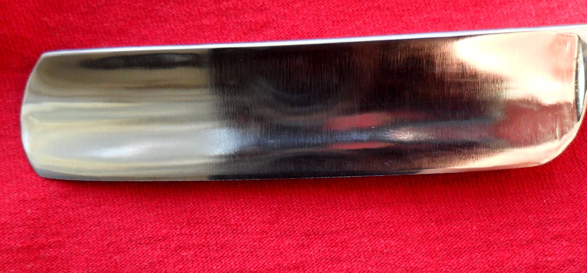 Надпись на клинке: Boots Special Razor. Ручка - натуральный рог. По всей видимости, ручка и пины родные. Ширина бритвы 19 мм (6/8 дюйма), толщина обуха 5,5 мм.