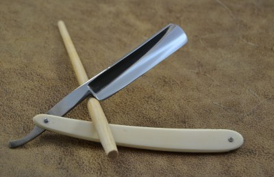 Вся в заводской полировке, рукоять из кости, имеет пару небольших скольчиков (видно на фото). Заточена, готова к бритью. Продано Spoiler Show