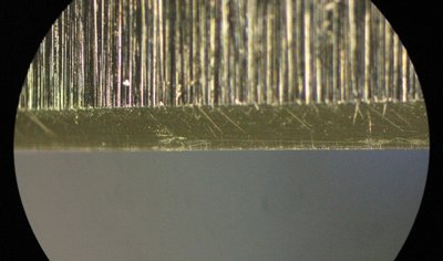 Re: Продаётся от Sandr (бритвы, РЕМНИ, аксессуары)Поступил запрос на фото фасок. ХЗ для чего это нужно, вам всё равно не точить, говорят для эстетики. Ну оценивайте тогда. На фасках трудно сфокусироваться, так что фото как есть, надеюсь видно что нужно было. Заодно сделаю фото кромки, так-то хорошо бы сразу к бритве её прикладывать, но финиш может быть изменен по желанию заказчика, так что сразу не делал.