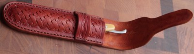 Чехол. Кожаный, с тиснением, ручной работы. От нашего форумчанина. Сделано качественно, на века.Бритва плотно сидит в чехле. Никуда не выпадает и не болтается.