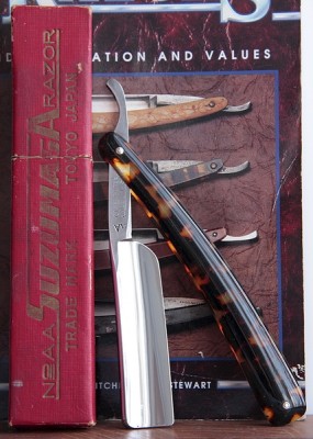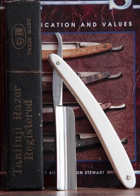 Бритву только тряпочкой протёр от патины. Ничего не разбиралось и не ремонтировалось. До меня заточных камней не видела. Находится в идеальном состоянии. Тяжёлая. Прекрасно подходит для новичка в качестве первой и последней бритвы.