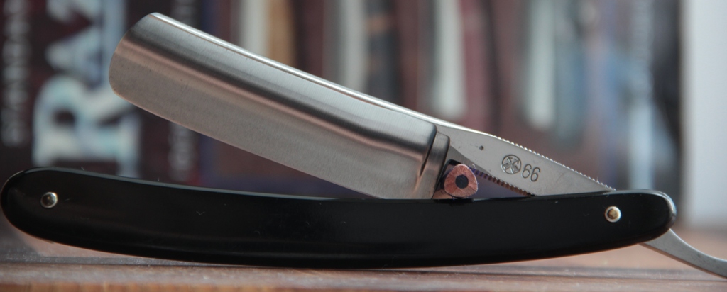 Также были мысли с сложности заточки такой бритвы, т.к. кромка не ложится всей плоскостью на камень и нужно будет приподнимать по очередности носик и пятку( как при заточке клина), но заточка прошла совершенно без проблем, как я считаю, опять таки, за счёт идеальной формы лезвия.Бритьё получилось чистое, мягкое без раздражения. Короче, бритва понравилась во всех смыслах: как с точки зрения эстетики и уникальности самого экземпляра, так и практической стороны.