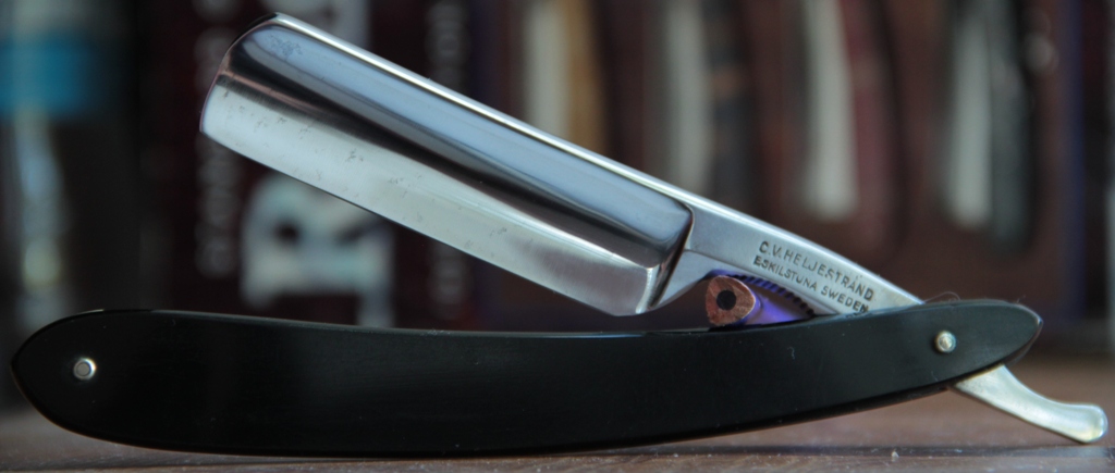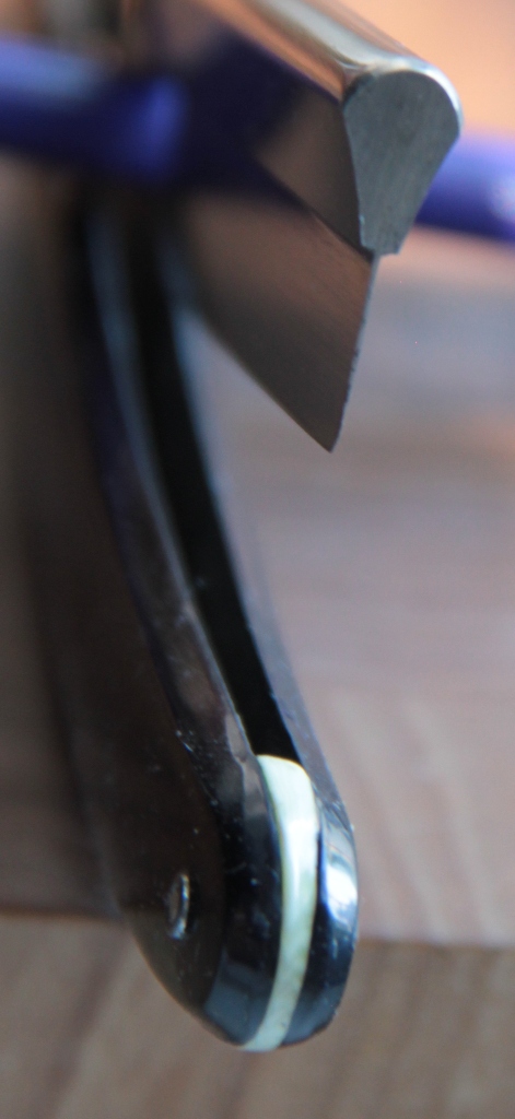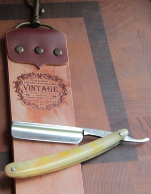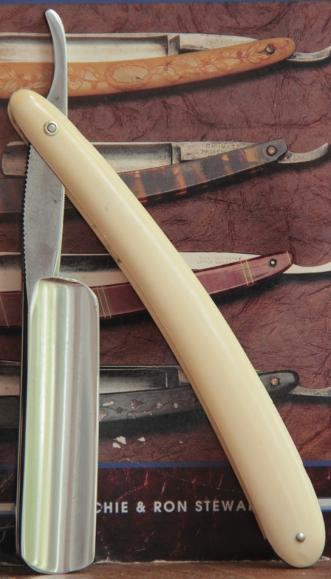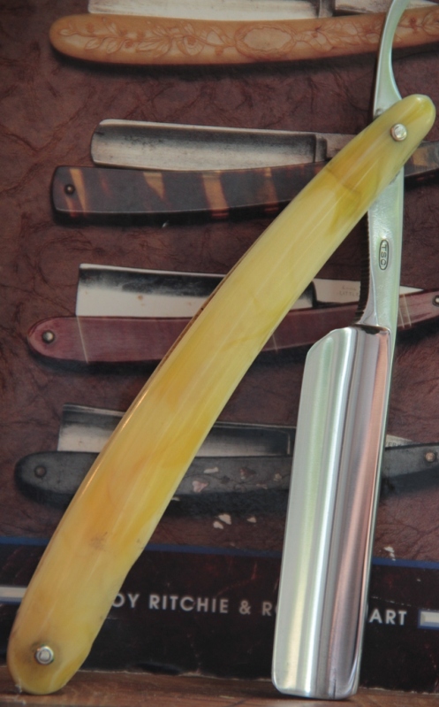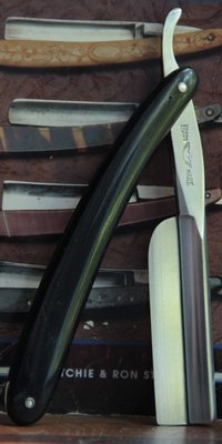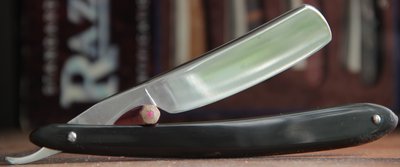 Бритва имеет толстый обушок, в связи с чем бритва несколько тяжелее своих собратьев такого размера. Из за своего веса и толстого обушка, бритва очень хорошо и легко точится без особого давления на кромку.Всё делается практически под собственным весом. Бритьё бритвой с таким полотном приближается к эталонному(ИМХО, конечно). Сталь здесь очень качественная, без каких либо проблем.Бритва совершенно непользованная.Всё оригинальное и ничего не разбиралось и не ремонтировалось. Полотно намертво впрессовано в обух. Бритва будет заточена впервые и подготовлена к бритью.