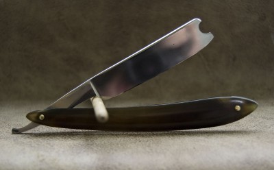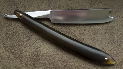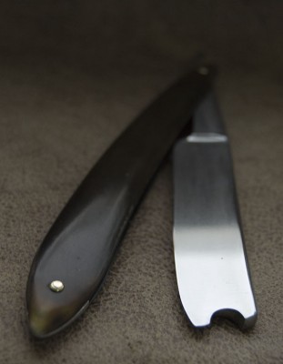 Вогнутость - клин, рукоять из светло -коричневого рога, клинышек - олово. Все родное Ширина 6/8. Полотно очень интересной формы, выполнено из Silver Steel, бритва после небольшой чистки - следов времени практически не имела, (фото ДО могу отправить в ЛС) в пользовании не была и не точилась. Рукоять из рога в отличном состоянии, закрывается ровно и плотно. Заточена, готова к бритью. Продано Spoiler Show