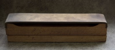 Буковый футляр в хорошем состоянии, период изготовления определить затрудняюсь, но думаю что конец 19- начало 20вв. Полностью отреставрирован, пропитан влагозащитным составом, бархат в отсеке для хранения заменен на новый. Кожа на правке так же заменена, но основной фишкой данного футляра является доводочный тюрингский сланец вполне рабочего размера 29*190мм. Для сравнения мой первый тюрингец на котором я вполне успешно доводил бритвы был размера 25*125мм. Камень мной выровнен и протестирован - дает отличный результат, превосходно выглаживает кромку, работает достаточно быстро . В футляр отлично входят и французские и английские старые бритвы до 6/8 включительно Продано Spoiler Show